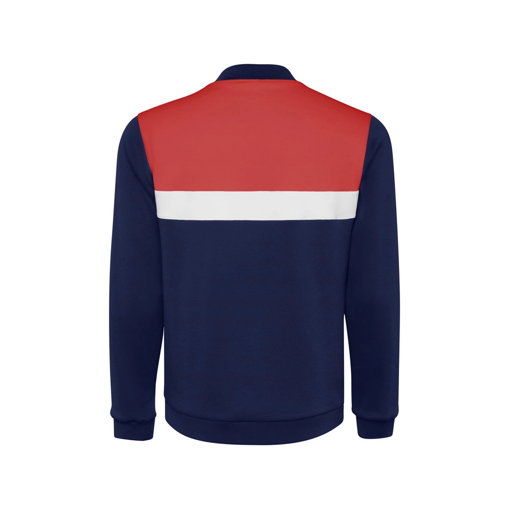 Спортивная куртка на молнии. Боковые карманы закрываются на молнию. Воротник, манжеты и низ из риба 1х1. Ассиметричная левая сторона спроектирована специально для вышивки. Может быть с комбинирована с брюками Rhodes.