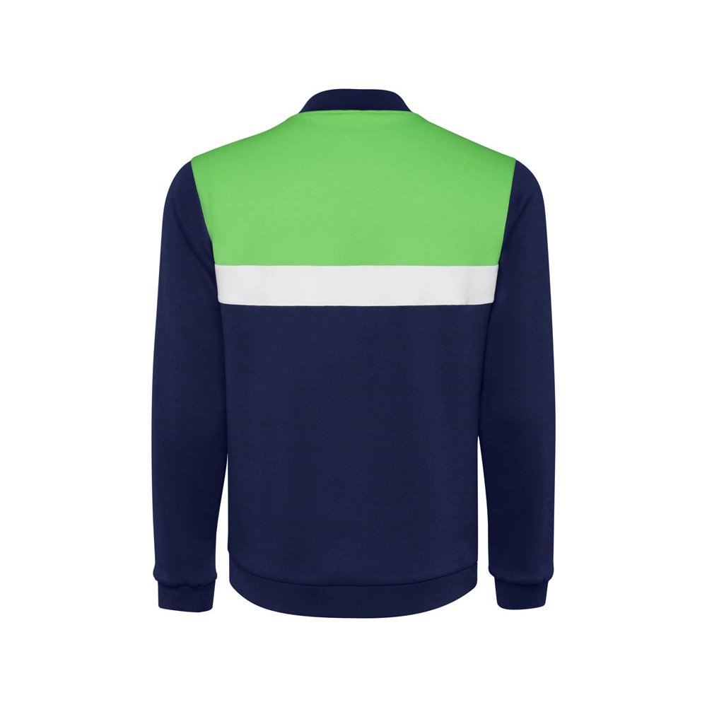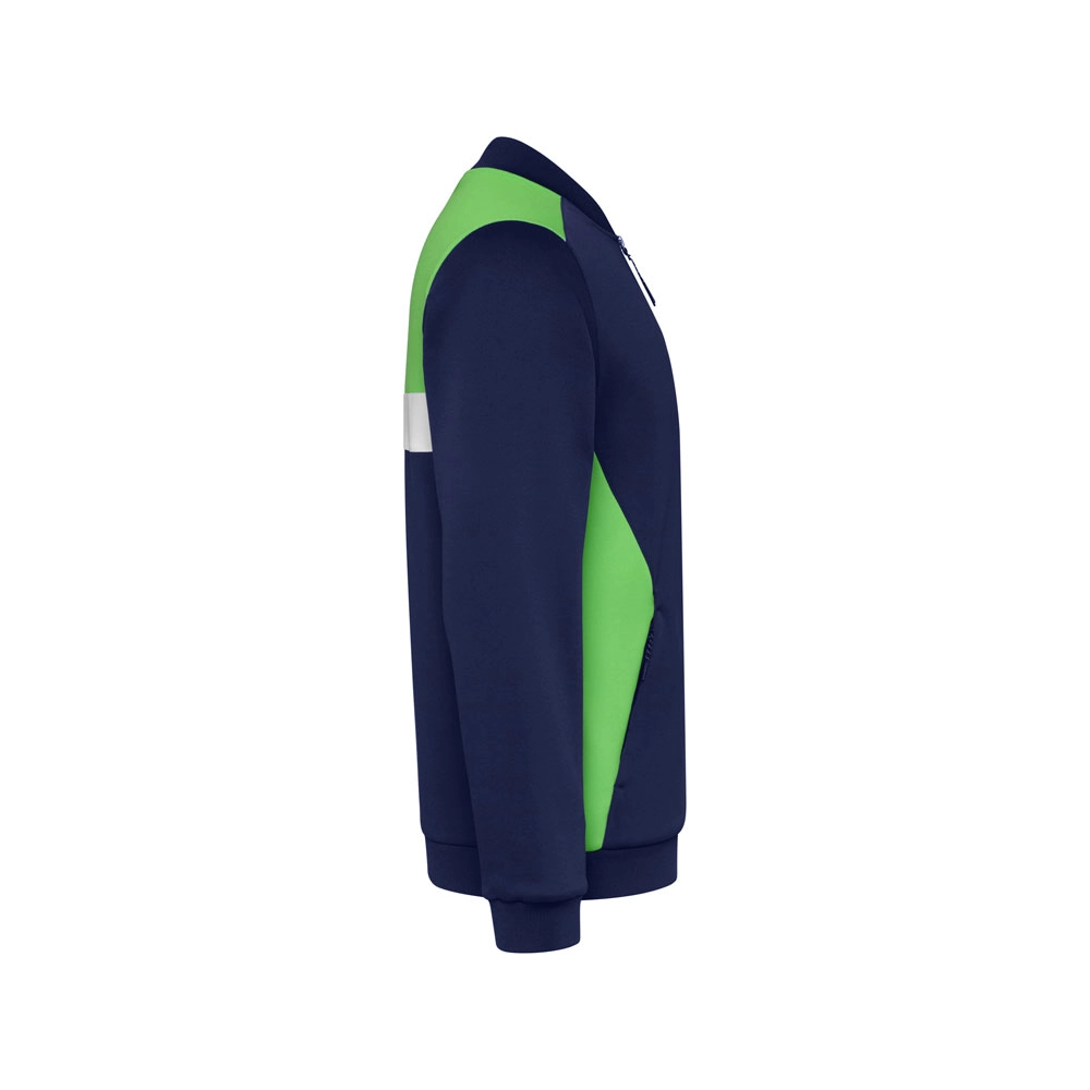 Спортивная куртка на молнии. Боковые карманы закрываются на молнию. Воротник, манжеты и низ из риба 1х1. Ассиметричная левая сторона спроектирована специально для вышивки. Может быть с комбинирована с брюками Rhodes.