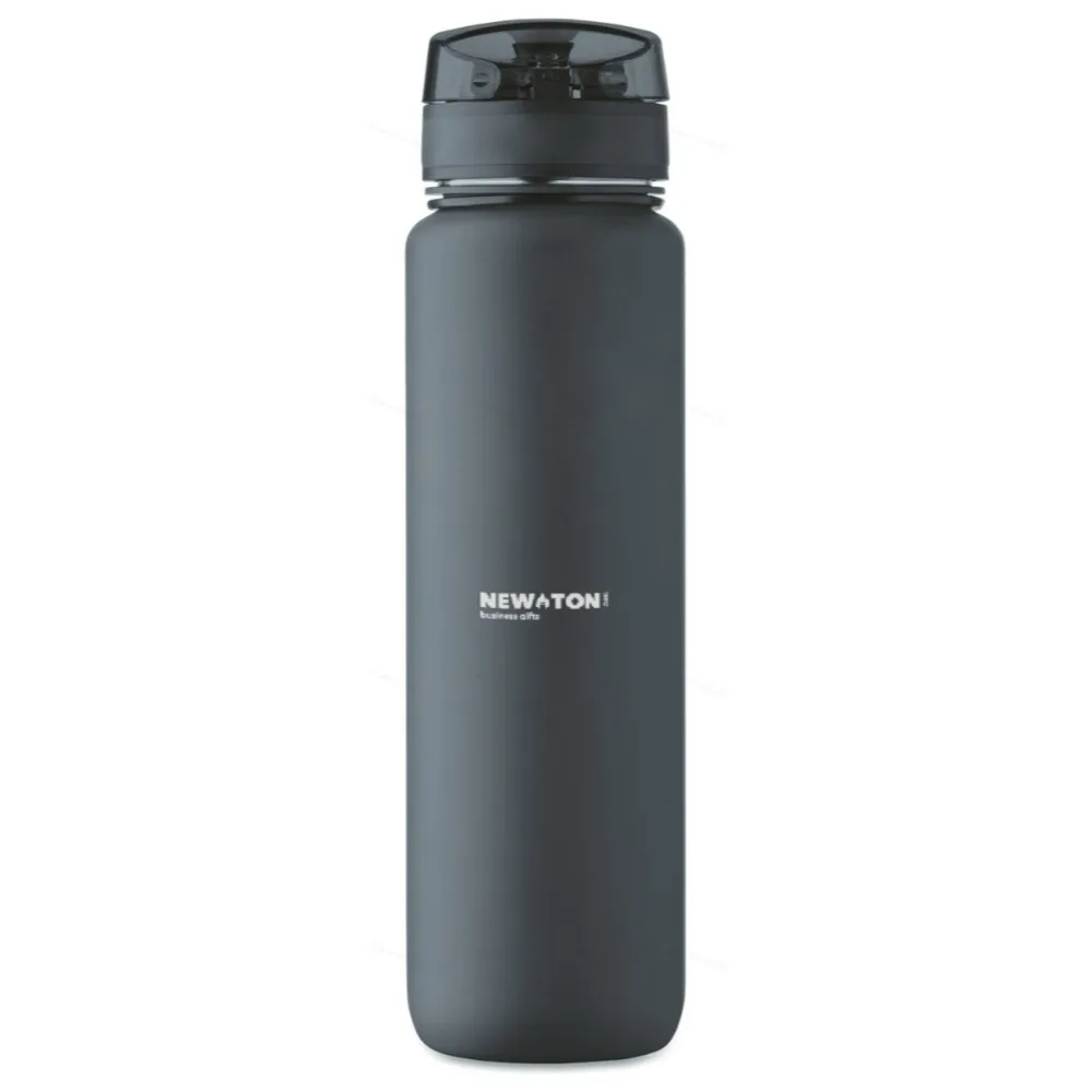 Спортивная бутылка из RPET с указанием графика потребления воды, откидной крышкой с предохранительным замком от открывания и ремешком для переноски. Герметичная. Емкость: 1 л.