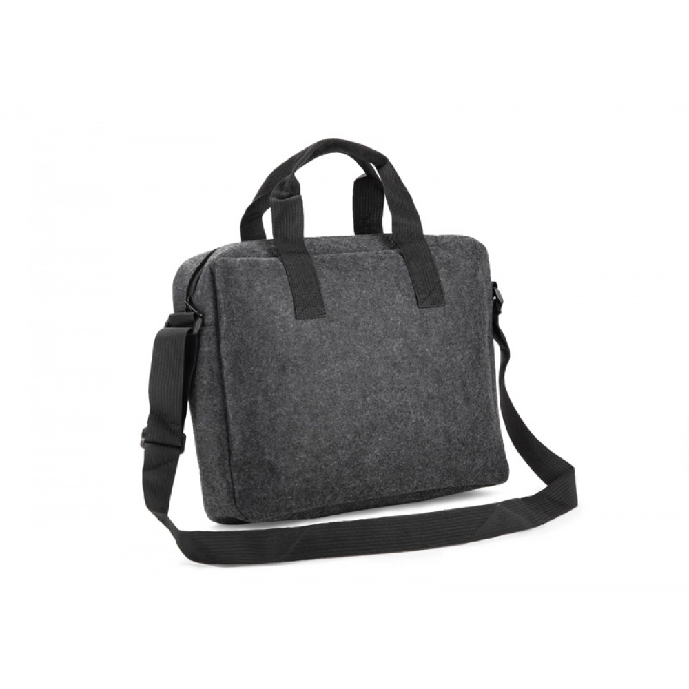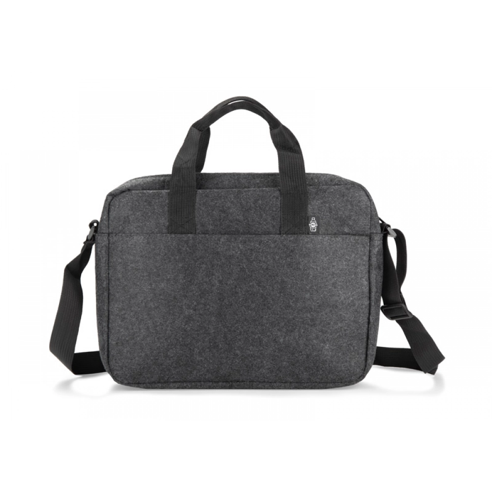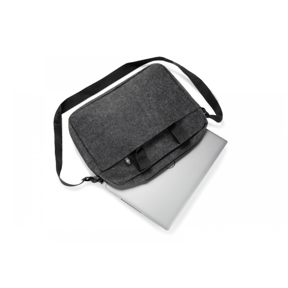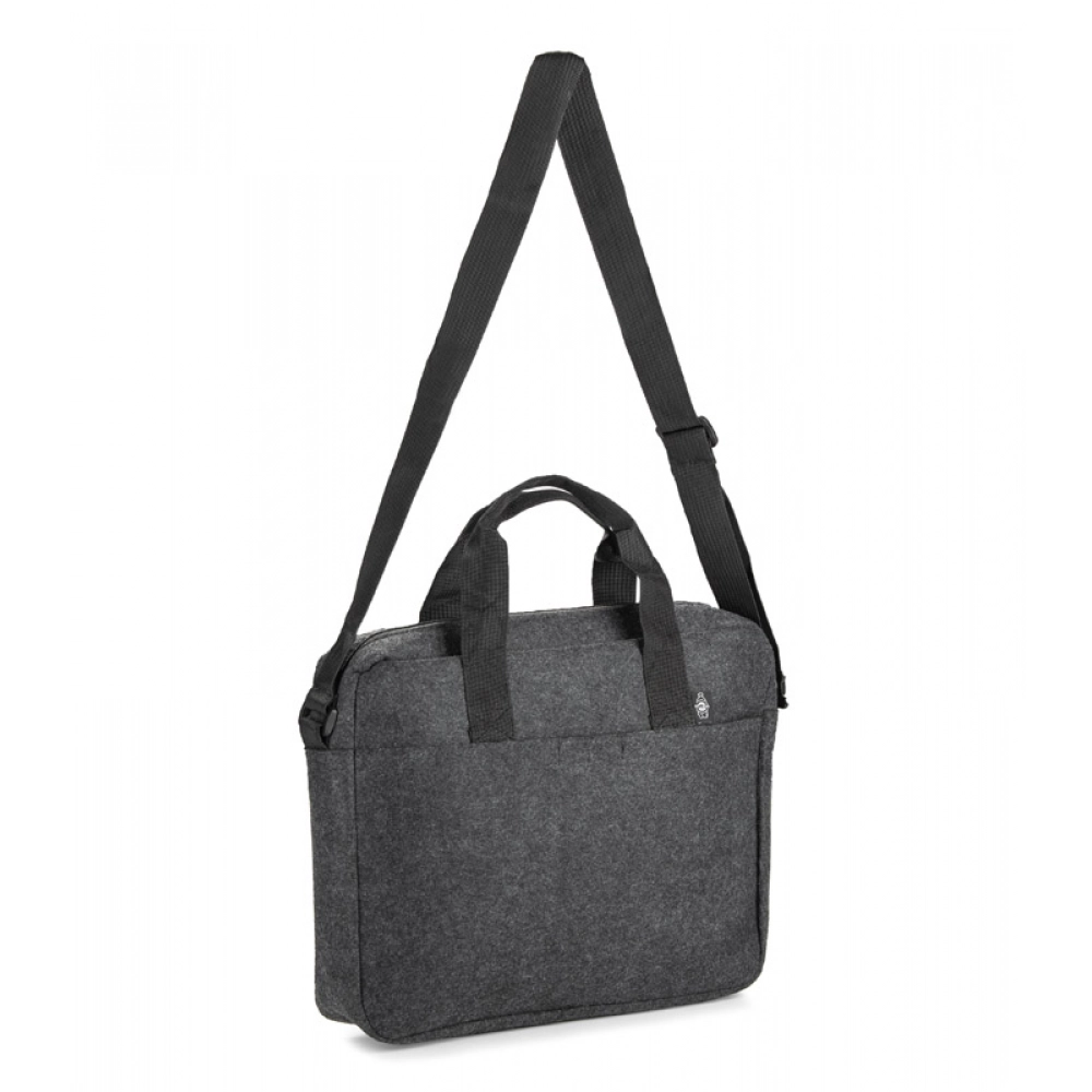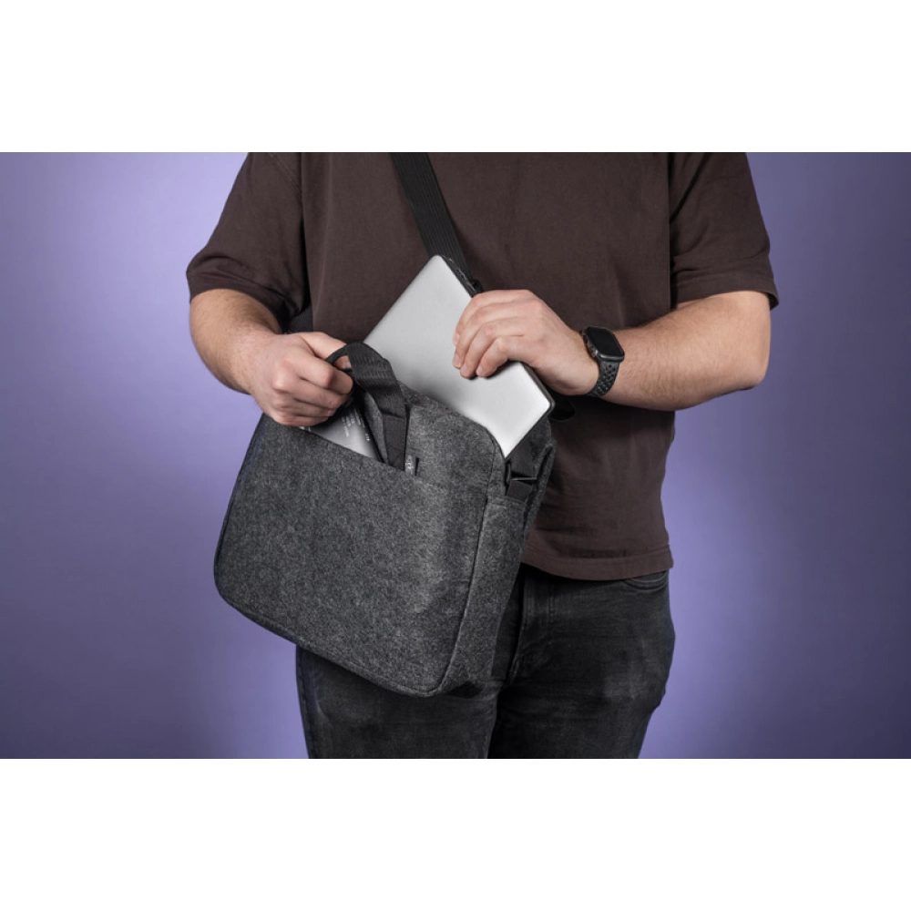 Сумка для ноутбука TEKKO изготовлена из переработанного фетра rPET, что делает её прочной и лёгкой. Она оснащена короткими ручками и регулируемым длинным плечевым ремнём. Основное отделение без дополнительных карманов закрывается на молнию. На передней стороне есть карман для мелочей, застёгивающийся на липучку. Простой и функциональный дизайн делает сумку подходящей для повседневного использования. Возможность нанесения брендинга делает её привлекательным рекламным аксессуаром.