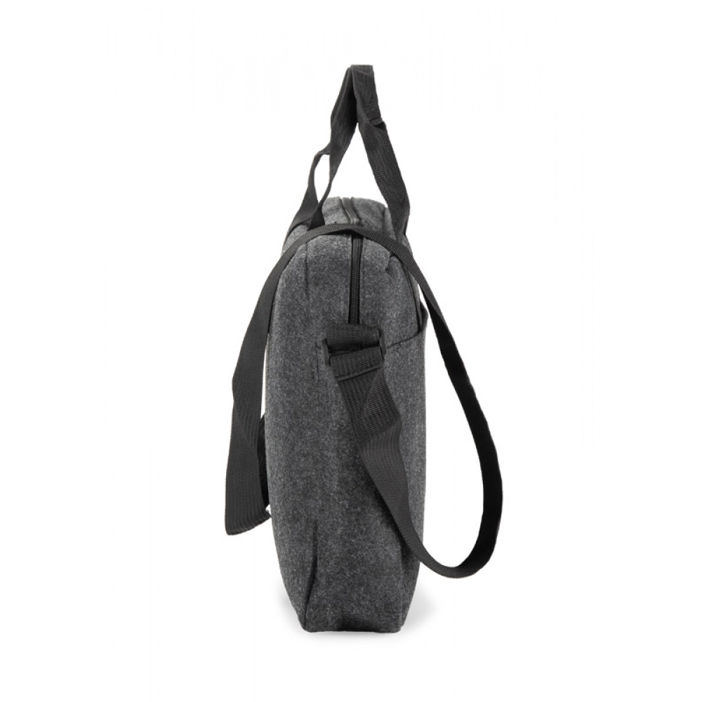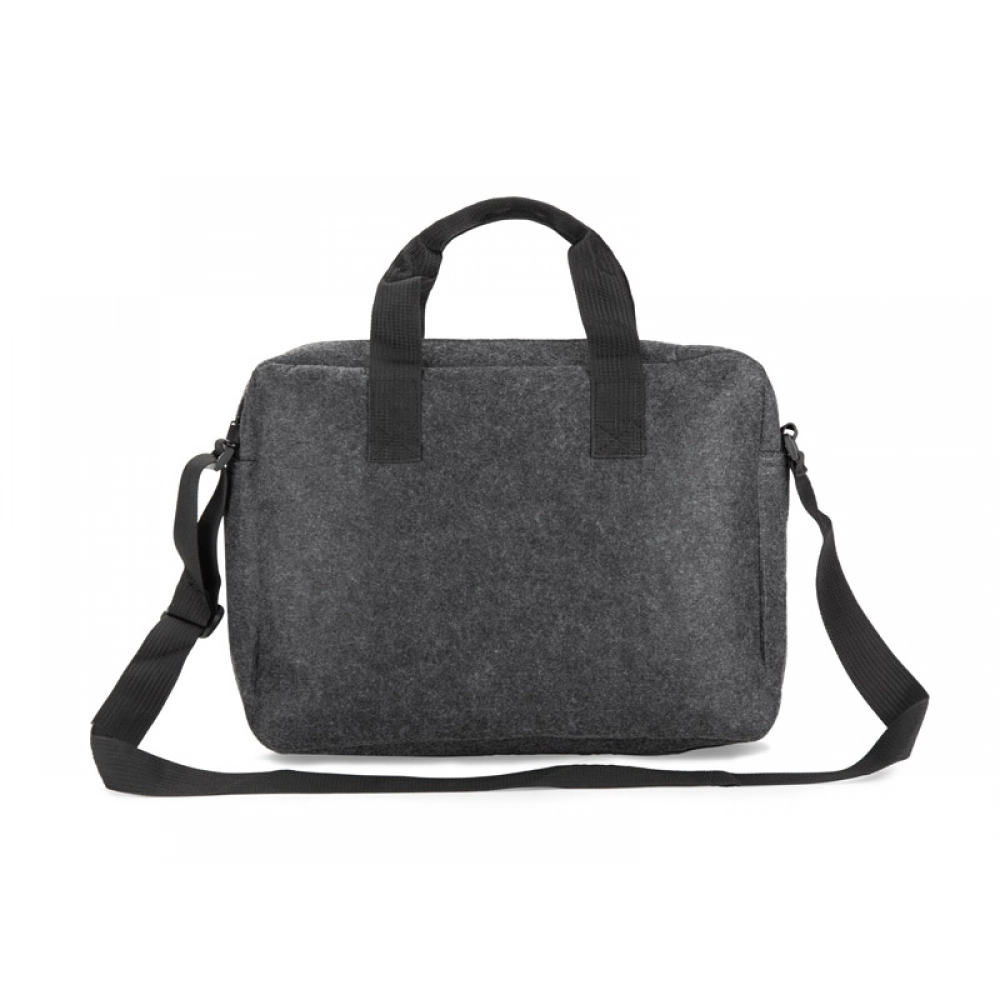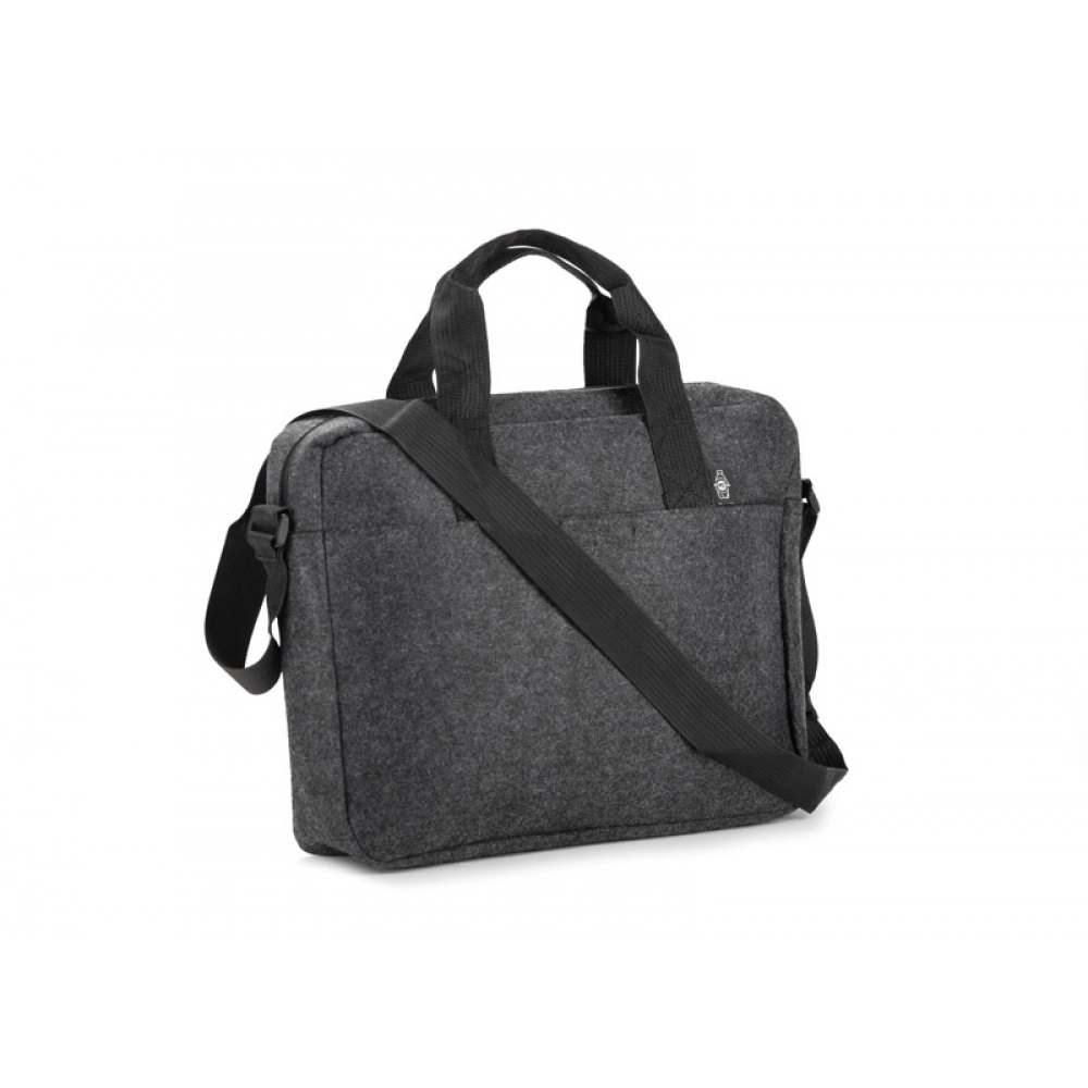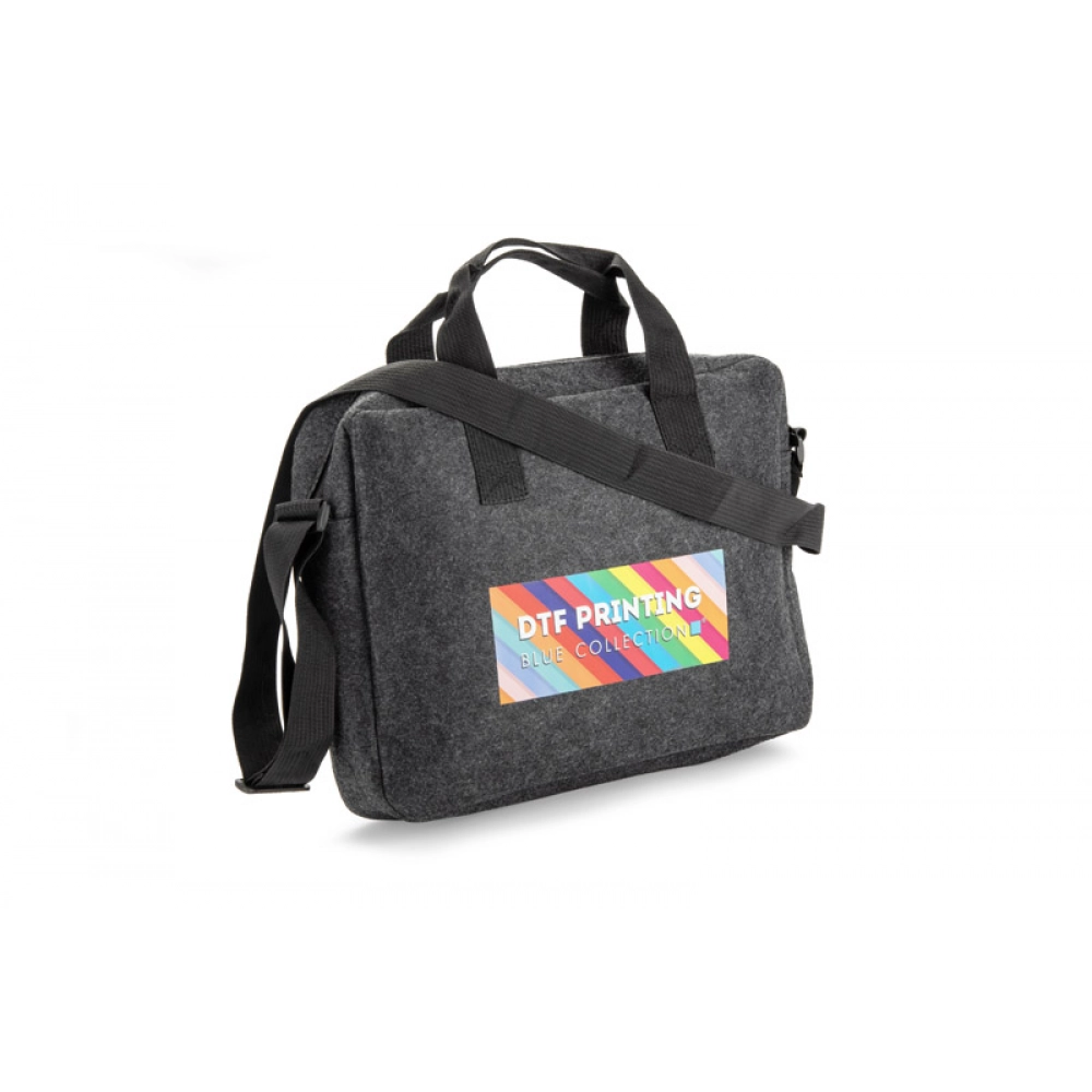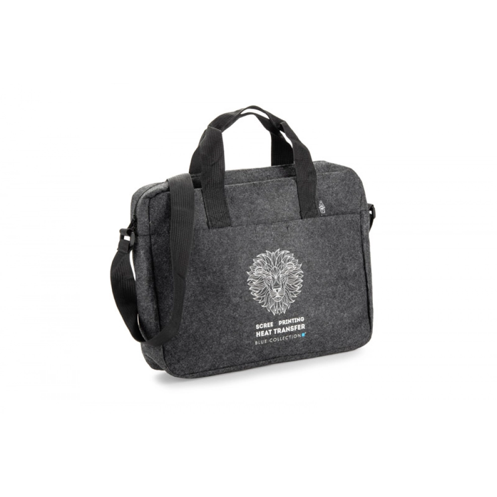 Сумка для ноутбука TEKKO изготовлена из переработанного фетра rPET, что делает её прочной и лёгкой. Она оснащена короткими ручками и регулируемым длинным плечевым ремнём. Основное отделение без дополнительных карманов закрывается на молнию. На передней стороне есть карман для мелочей, застёгивающийся на липучку. Простой и функциональный дизайн делает сумку подходящей для повседневного использования. Возможность нанесения брендинга делает её привлекательным рекламным аксессуаром.