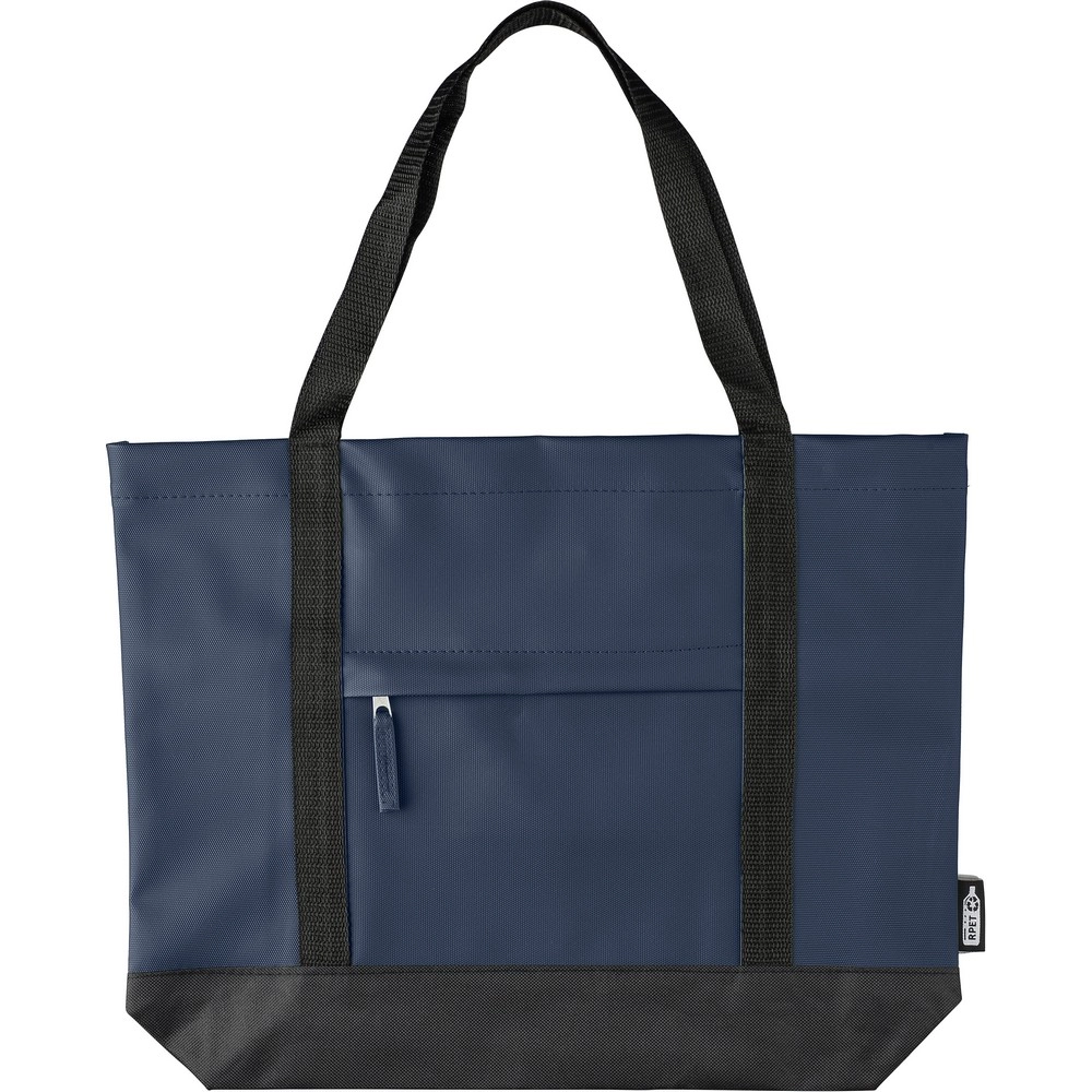 Сумка для покупок с покрытием с обеих сторон для отталкивания воды, вместимость: 10 л, грузоподъемность: 10 кг, оснащена длинной ручкой для удобства ношения, два кармана на молнии, внутренний карман, включает значок RPET на ярлыке, изделие изготовлено из RPET.