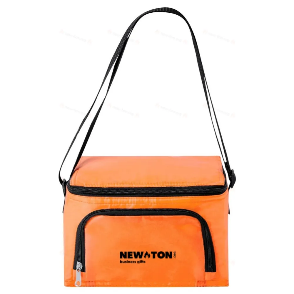 Полиэстеровая сумка-холодильник с застежками-молниями, алюминиевой подкладкой и плечевым ремнем. Вмещает 6 банок объемом 0,33 литра. Изготовлена из полиэстера 210D.