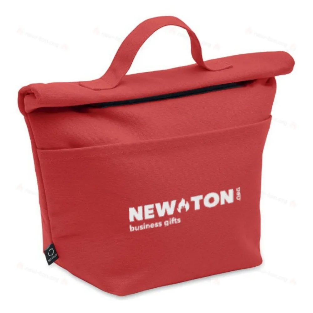 Сумка-холодильник из переработанного хлопка 70% и 30% переработанного полиэстера с застежкой ролтоп. Изоляция: 3 мм пенополиэтилен и 12C PEVA.