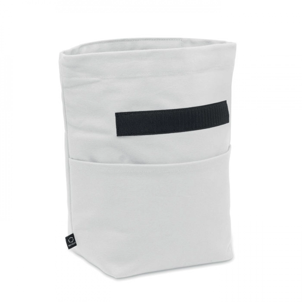 Recycled cotton (70% recycled cotton, 30% recycled polyester) insulated lunch cooler bag with rolltop hook and loop closure. Insulation: 3mm PE foam with 12C PEVA.