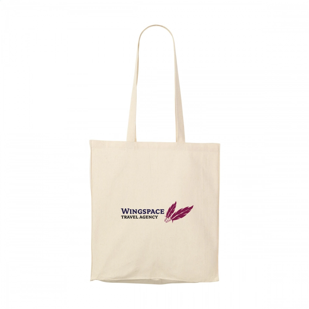 Прочная сумка-шоппер с длинными ручками. Изготовлена из 100% тканого хлопка (165 г/м²). Объем примерно 12 литров.