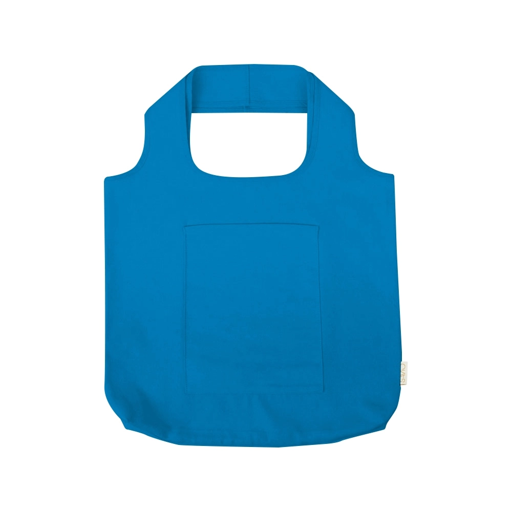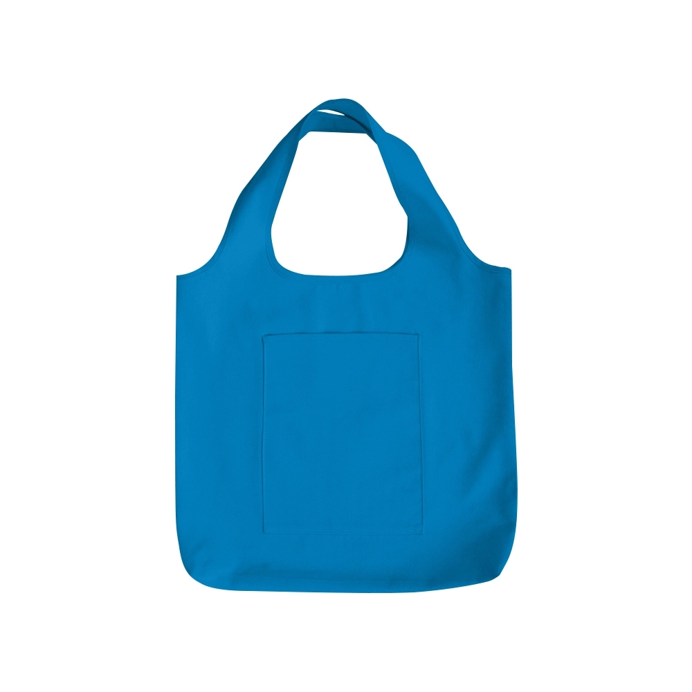 Вместительная сумка-шоппер из очень плотного переработанного хлопка с широкими лямками и большим наружным карманом 20 x 25 см спереди.