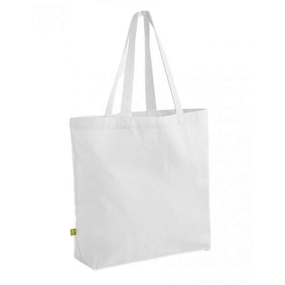 Сертифицированный органический хлопок | Большая вместимость | Можно носить в руках или на плече | Этикетка CutAway для удобства ребрендинга | Поставка без декора/содержимого