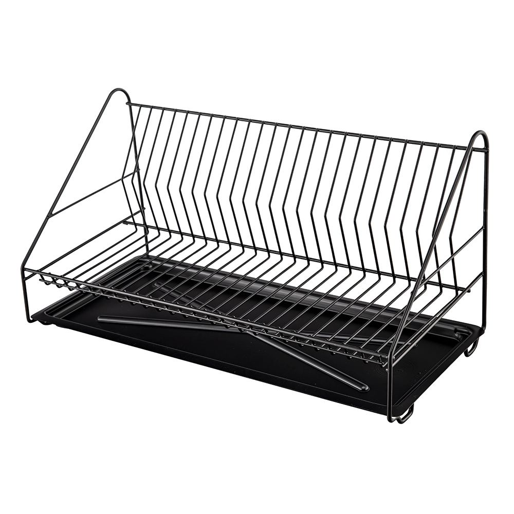 Сушилка для посуды черного цвета с одним уровнем, 50 см, с лотком