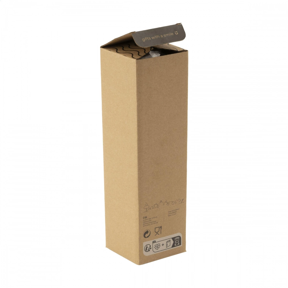 Двустенная термобутылка с вакуумной изоляцией, изготовленная из переработанной нержавеющей стали. Оснащена винтовой крышкой/чашкой для питья и удобной системой наливания с нажимом. Герметична. Имеет матовое металлическое покрытие. Не подходит для мытья в посудомоечной машине. Сертифицирована RCS. Общий процент переработанных материалов: 69%. Нержавеющая сталь может многократно перерабатываться, сохраняя качество материала. Использование переработанной нержавеющей стали снижает потребность в новых сырьевых материалах, что означает меньшее потребление энергии и воды. Объем 500 мл.