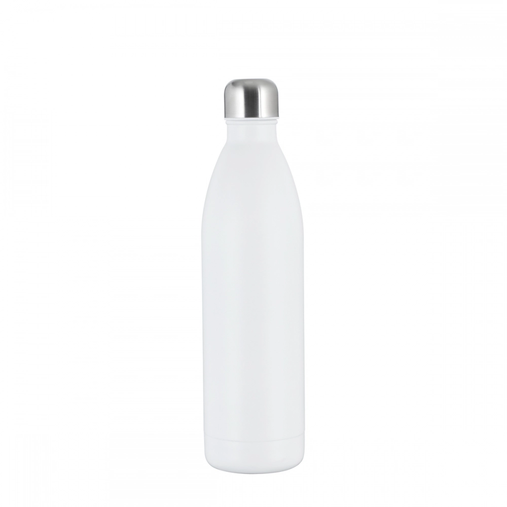 Двустенная термо-бутылка для напитков объемом 750 мл является более крупной альтернативой нашей оригинальной модели. Она сохраняет ваши напитки горячими или холодными и привлекает внимание особенно большим и заметным логотипом. Бутылка доступна с белым или черным порошковым покрытием, а также в матовом серебристом нержавеющем исполнении с покрытием против отпечатков пальцев. Винтовая крышка защищает от протекания.
