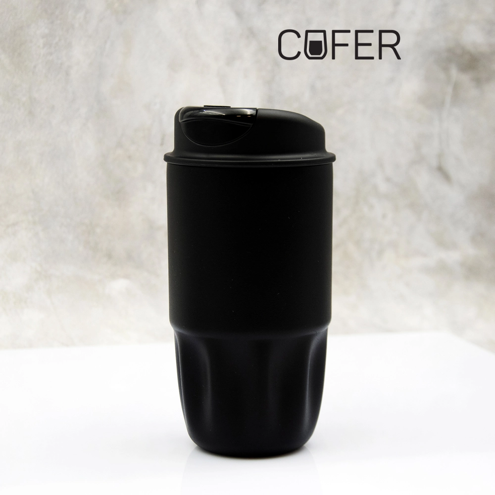 Термостакан от бренда Cofer имеет вакуумную конструкцию в уникальном дизайне и изготовлен из нержавеющей стали.