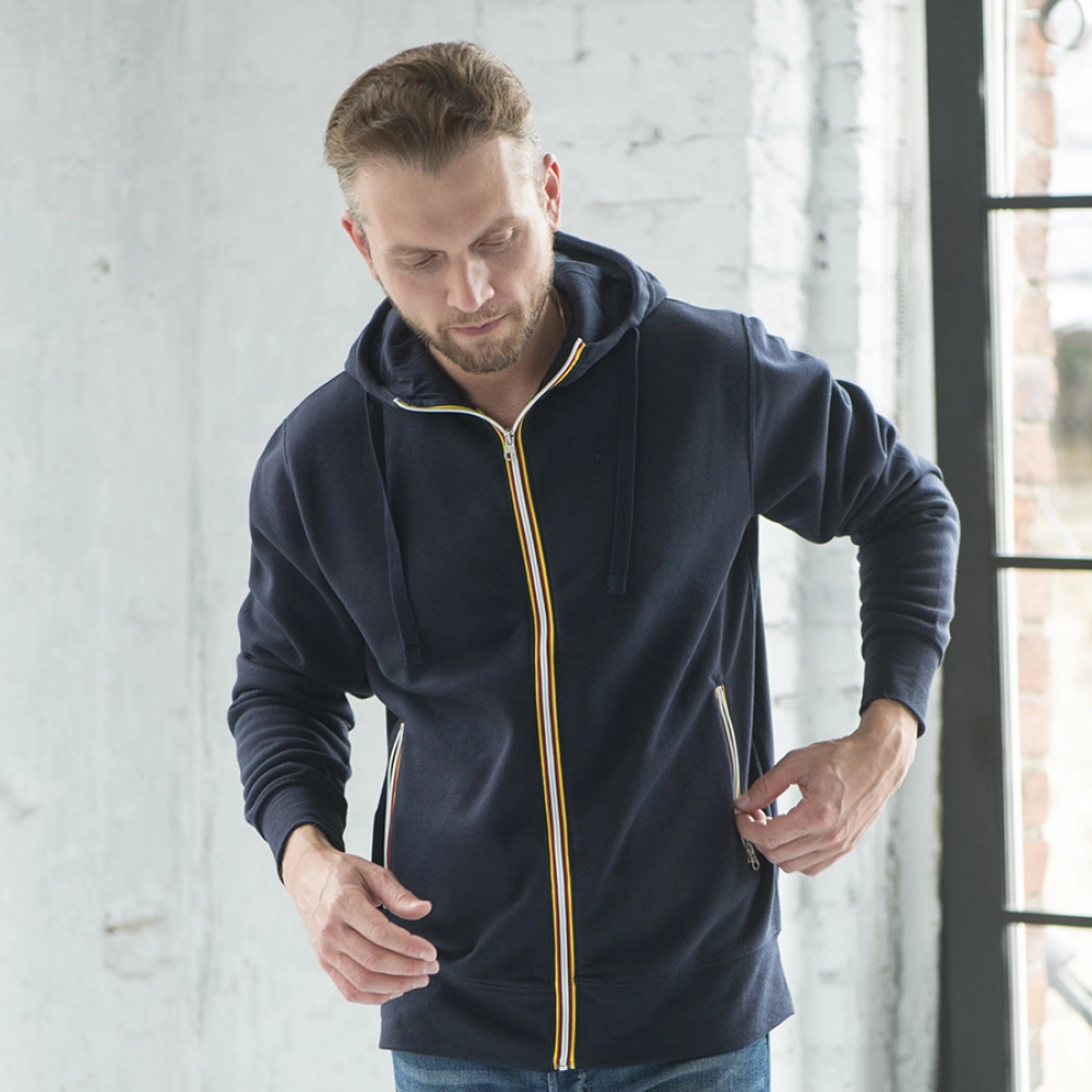 Комфортная толстовка худи на молнии LAS VEGAS MAN из футера с начёсом, плотностью 280 г м² и смесовым составом: 65% полиэстера и 35% хлопка. С таким составом изделия не деформируются и служат долго. Капюшон с подкладом и удобным высоким воротником-стойкой. Шов горловины усилен мягкой лентой Низ толстовки и рукава из эластичной рибаны. Основная молния и молнии в боковых карманах - контрастные.   Материал: футер с начёсом, 65% полиэстера и 25% хлопка, 280 г м².