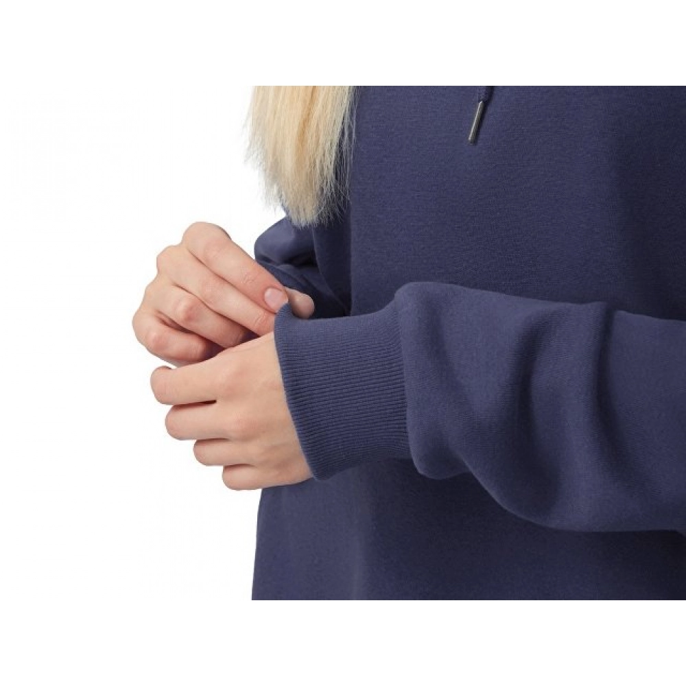 Толстовка с капюшоном из мягкого флиса из смеси хлопка и полиэстера. Модель комфортной и актуальной посадки оверсайз отлично подходит для обычной жизни и в качестве промо мерча. - оверсайз посадка - удобный капюшон на подкладке -мягкое и уютное полотно из смеси хлопка и полиэстеры - Низ и рукава обработаны манжетами из риба 2х2 и дополнительно отстрочены для укрепления - увеличенная зона для нанесения из-за отсутствия кармана