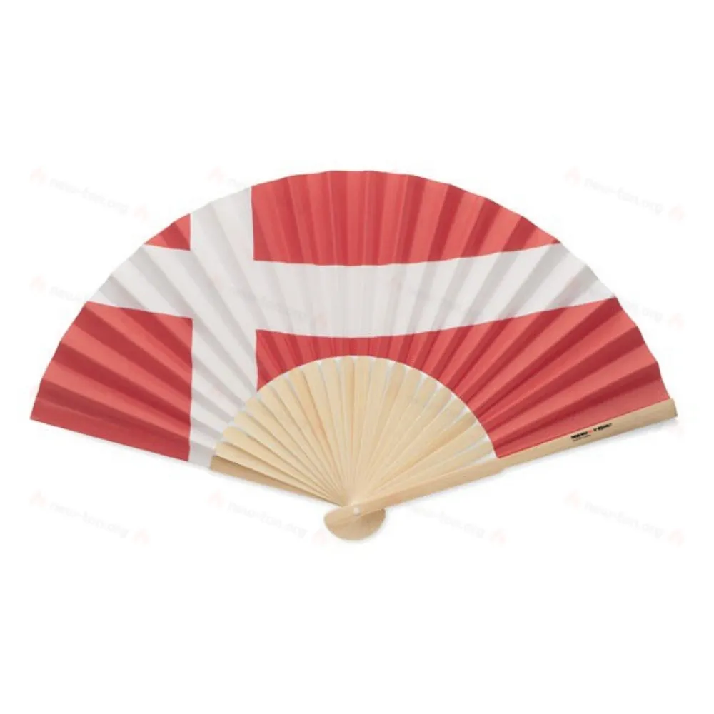 Веер с ручкой из бамбука и рисунком флага на ткани.