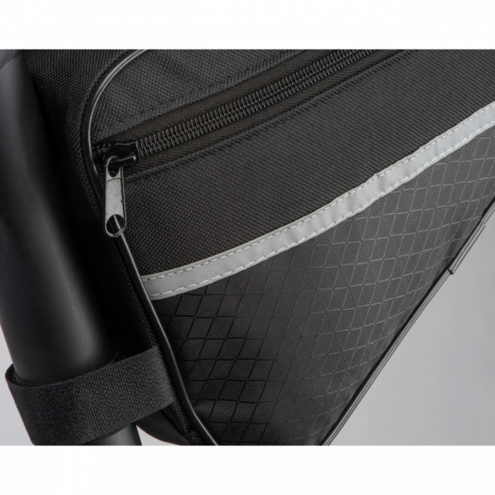 Велосипедная сумка из прочного полиэстера 600D с отражающими полосами. Сумка легко крепится к средней раме с помощью кронштейнов и предоставляет достаточно места для всех важных принадлежностей. Мы нанесем ваш логотип на сумку.