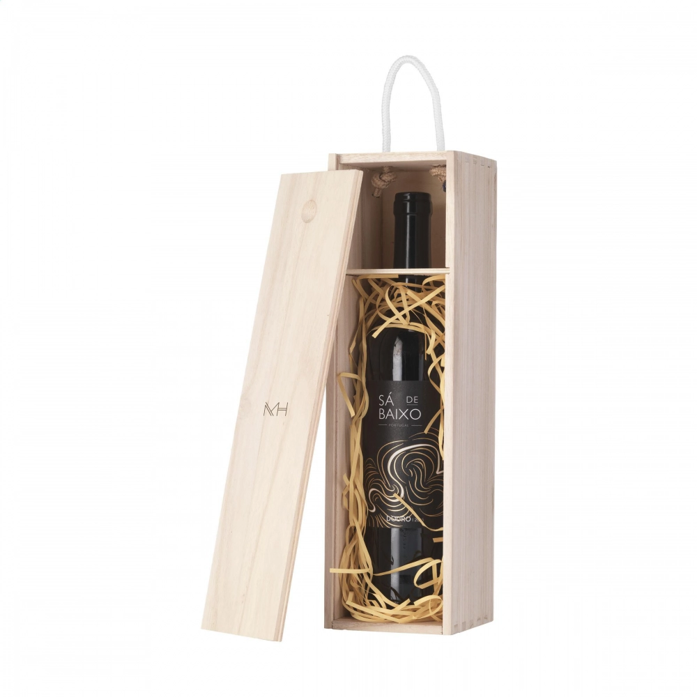 Коробка для вина из дерева павловнии. С выдвижной крышкой и шнурком. Подходит для одной бутылки вина (0,75 л). Вино в комплект не входит.