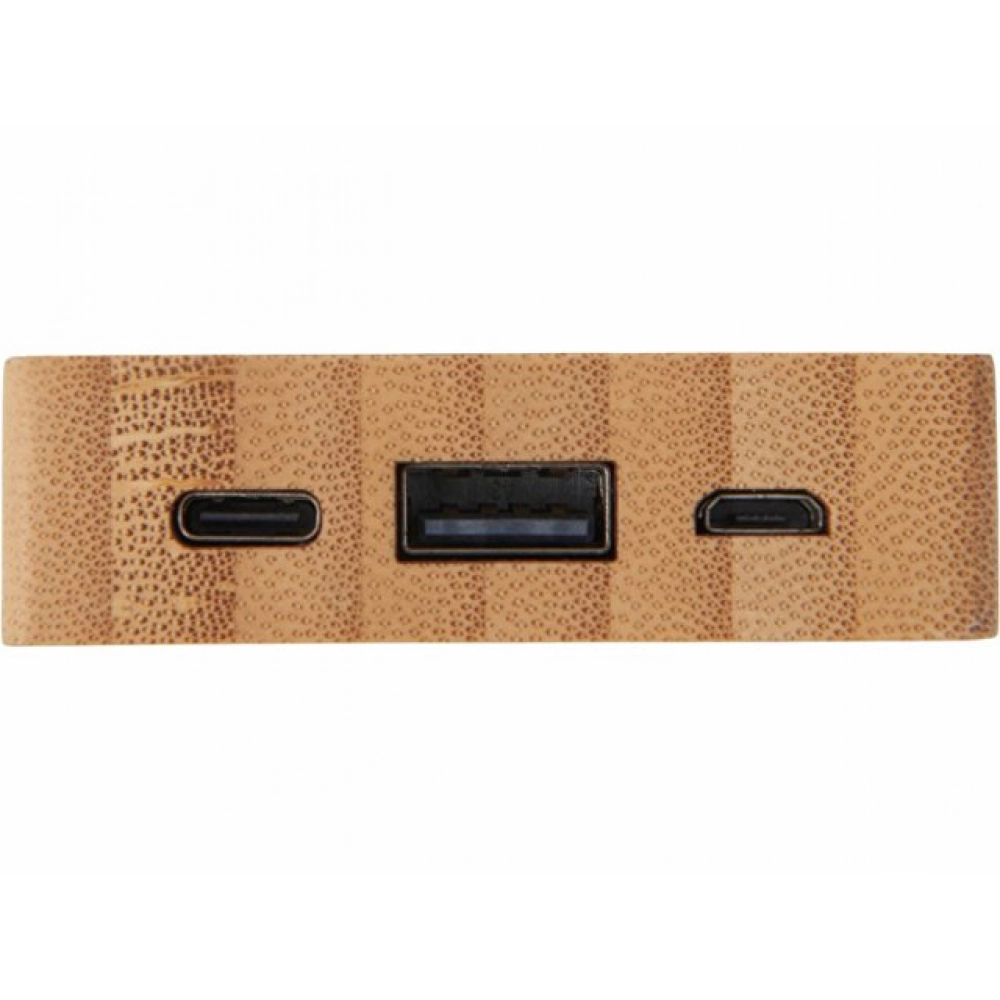 Компактный и стильный внешний аккумулятор ёмкостью 5 000 мАч — идеальный спутник для повседневных дел и коротких поездок. Его корпус сочетает в себе натуральный бамбук и переработанный ABS-пластик, что делает устройство не только более экологичным, но и визуально премиальным. Особый шарм ему придаёт встроенная панель с белой подсветкой с возможностью нанесения логотипа — ваш бренд или инициалы мягко засветятся в темноте, привлекая внимание и подчеркивая индивидуальность. Это не просто power bank — это экосознательный аксессуар, который заряжает ваши гаджеты и вдохновляет окружающих. - Компактный — 5 000 мАч в стильном корпусе для зарядки смартфона в дороге - Экологичный материал — натуральный бамбук + переработанный ABS-пластик - Логотип с подсветкой — ваш бренд мягко светится в темноте - Идеальный подарок — для клиентов, партнёров или сотрудников, кто ценит стиль и экологию