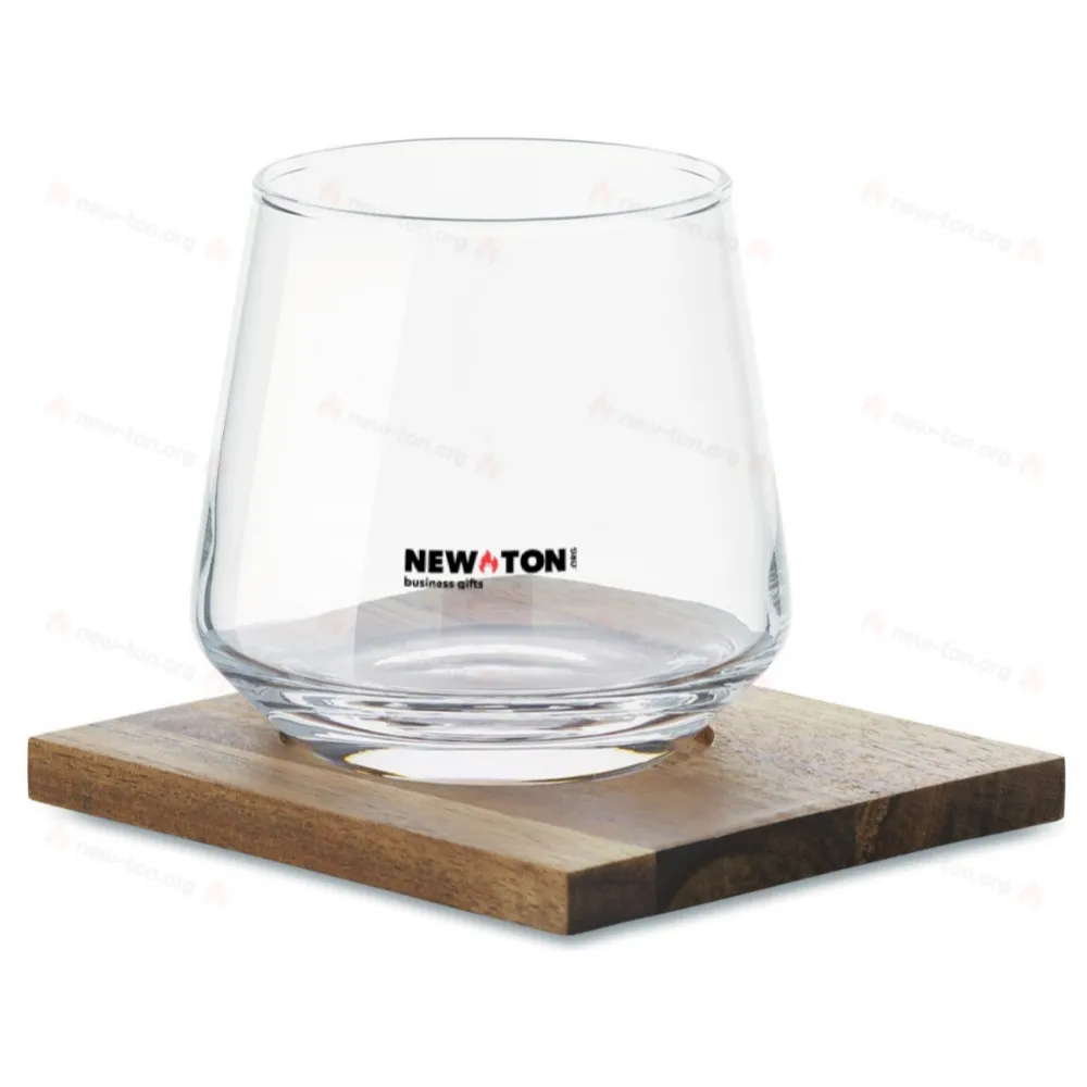 Стакан для виски или других напитков на подставке из акации. Емкость: 200 мл.