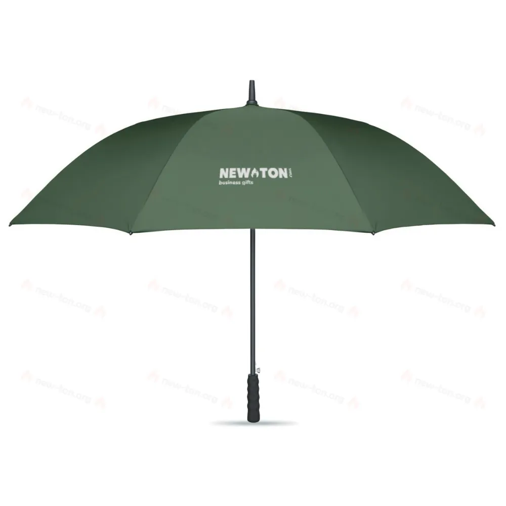 27-дюймовый автоматический зонт, устойчивый к ветру, из ткани понже 190T RPET. Каркас и спицы из стекловолокна. Ручка из соломы и переработанного ABS-пластика. Пластиковые наконечники и верхушка.