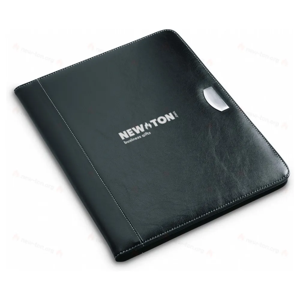 Папка для бумаг формата А4 с металлической пластинкой для логотипа. Включает блокнот на 20 листов