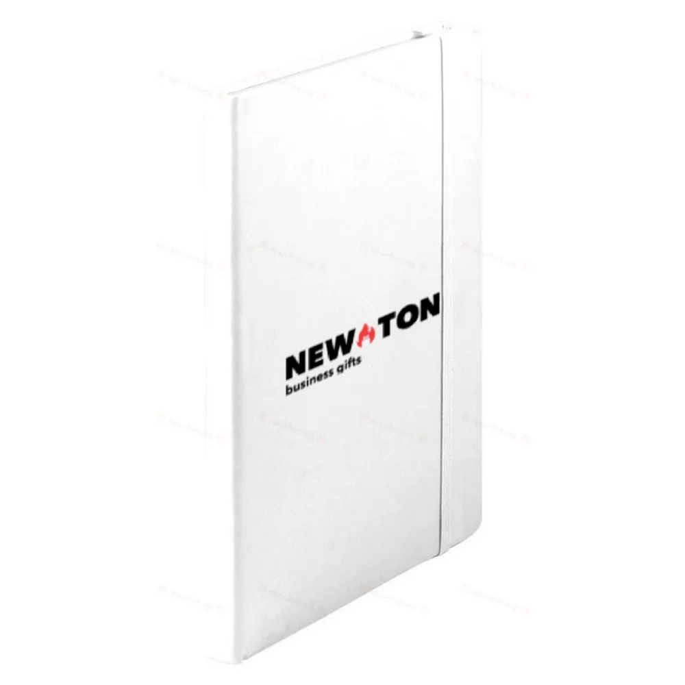 Блокнот в обложке из искусственной кожи со 100 линованными листами и резиновым ремешком.