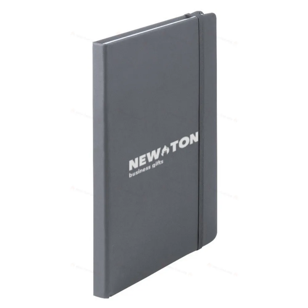 Блокнот в обложке из искусственной кожи со 100 линованными листами и резиновым ремешком.