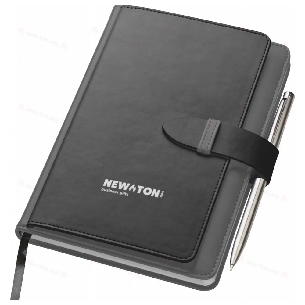 Блокнот формата A5 из искусственной кожи с 256 линованными страницами, держателем для ручки и местом для 6 кредитных карт. Мы нанесем ваш логотип на переднюю сторону.