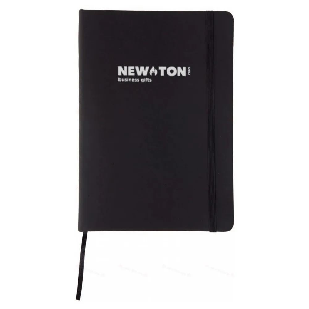 Блокнот в кожаном переплете со 100 листами, закладкой и каучуковым ремешком.