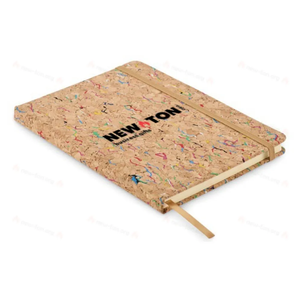 Блокнот формата А5 в твердой цветной пробковой обложке с закладкой-лентой и эластичным держателем для ручки. В переплете. 192 линованные страницы (96 листов). Закрывается на эластичный ремешок.