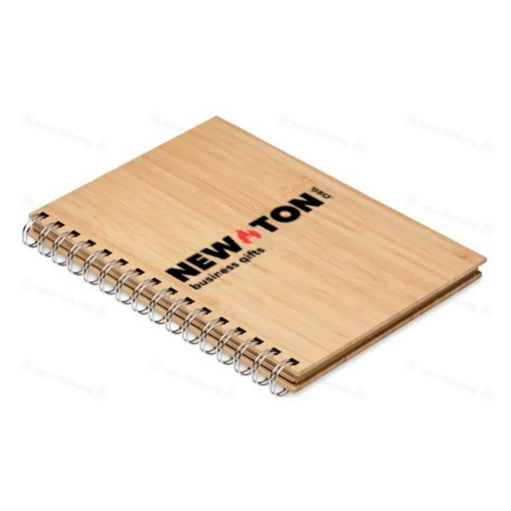Блокнот А5 в бамбуковой обложке. Двойной кольцевой переплет, 140 линованных страниц из крафт-бумаги (70 листов).