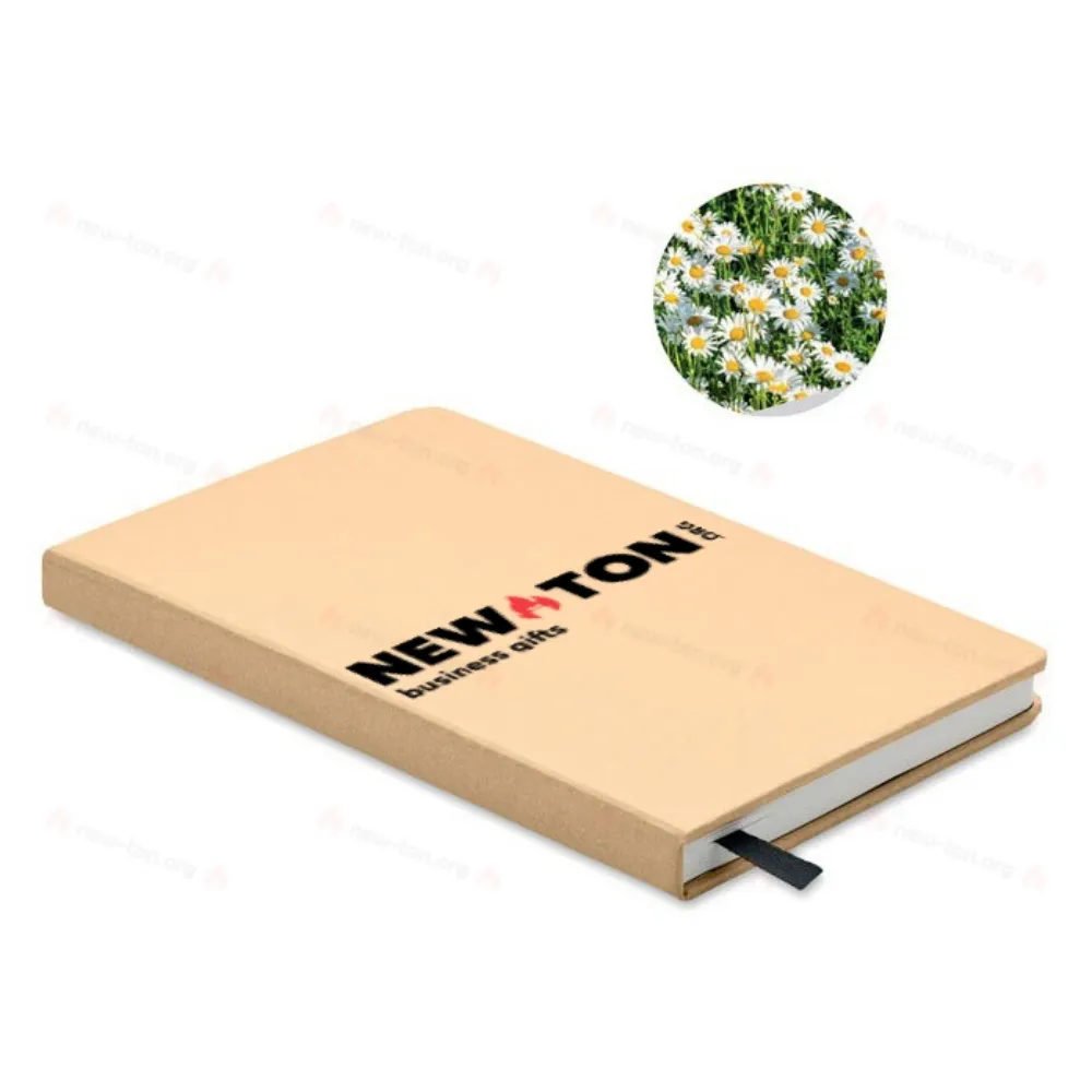 Блокнот формата A5 с обложкой из прочной твердой бумаги. В переплете. 184 линованные страницы (92 листа) из переработанной бумаги. Закладка из хлопка. Включает семена для посева. Сделано в ЕС. Этот экологичный блокнот оказывает минимальное воздействие на окружающую среду и является отличным рекламным подарком. В блокнот каждого цвета вложены семена разного типа, которые вы можете посадить в своем саду. Цветовой код указывает на тип семян: Черника (04), Клубника (05), Белая маргаритка (06), Зерно (13), Лаванда (37) и Яблоко (48).