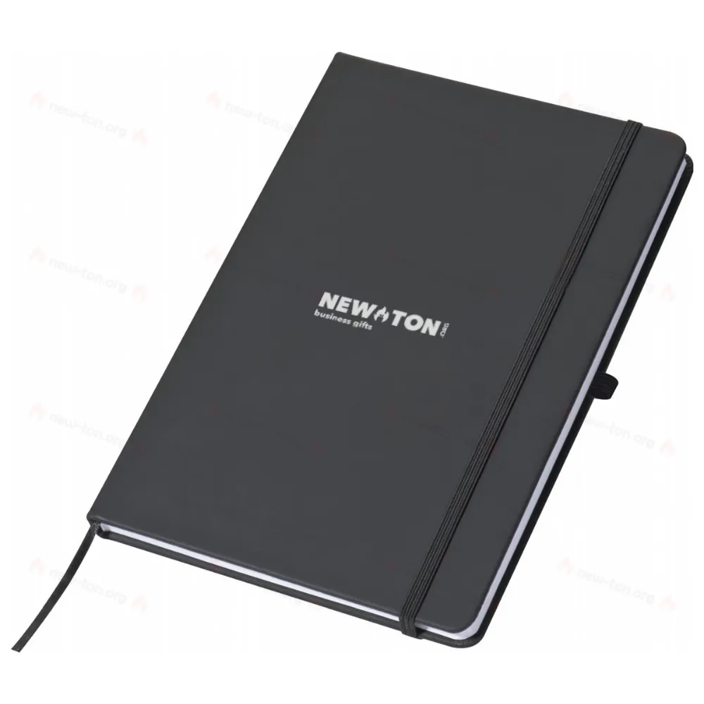 Блокнот формата А5 (160 листов в линию). Твёрдая обложка из PU с резинкой для закрытия.