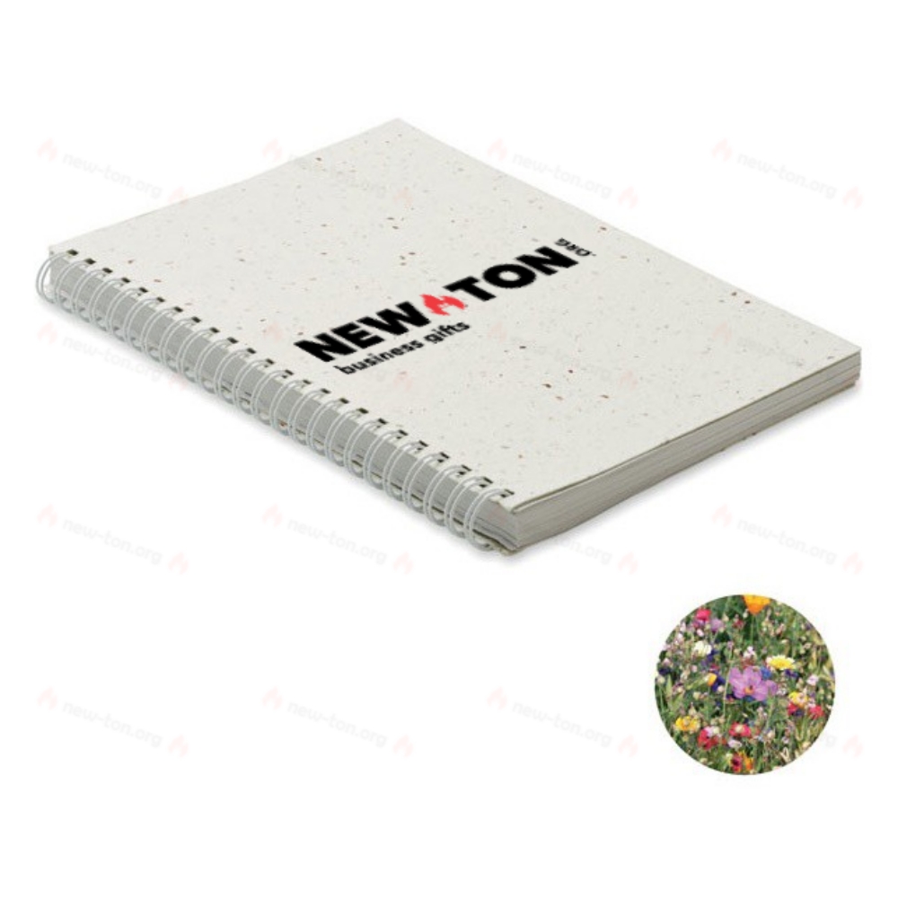 Блокнот A5 с обложкой из посевной бумаги. Двойная проволока. 200 линованных страниц из переработанной бумаги (100 листов).