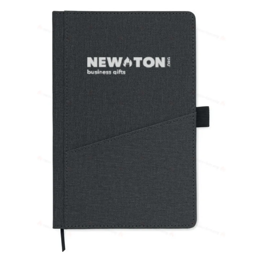 Блокнот формата А5 в твердой обложке из полиуретана с передним карманом для телефона и петелькой для ручки. В переплете. 160 линованных страниц из переработанной бумаги (80 листов). Закладка-лента. FSC®-certified | FSC MIX CREDIT, P7.1, FSC-C213206