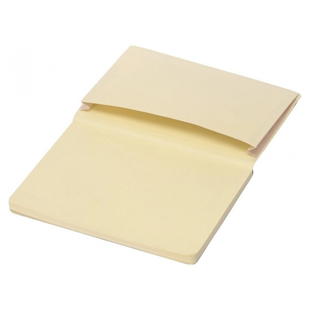Простой, но очень стильный и качественный блокнот из искусственной кожи. Блокнот закрывается при помощи эластичной резинки в цвет обложки. Внутри есть конверт для визиток и записок. Все страницы с перфорацией, что позволяет вырывать страницы без нарушения целостности блока.