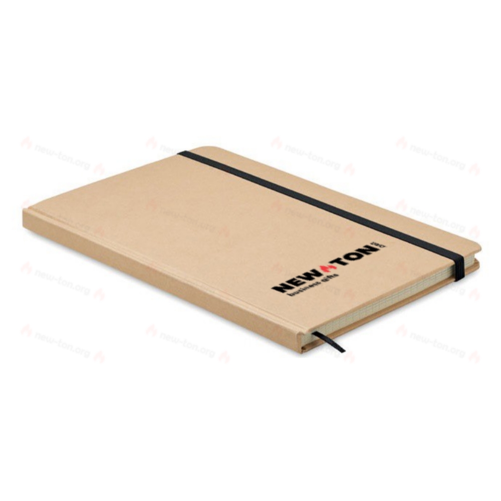 Блокнот формата A5 с твердой обложкой из переработанного картона. В переплете. 160 клетчатых страниц из переработанного картона (80 листов). Эластичный хлястик, ленточка-закладка.