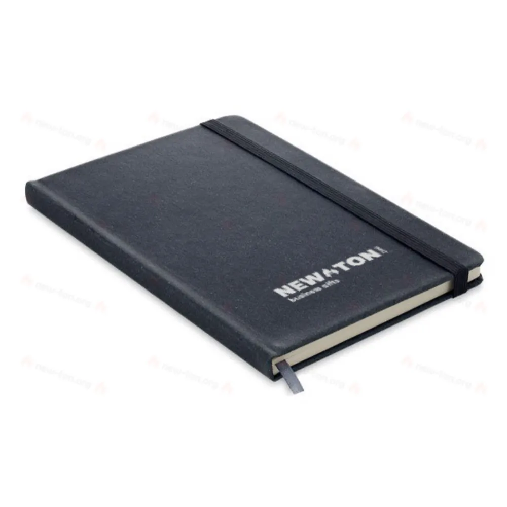 Блокнот формата A5 с обложкой из переработанного полиуретана и 80 линованными страницами. Блокнот на резинке.