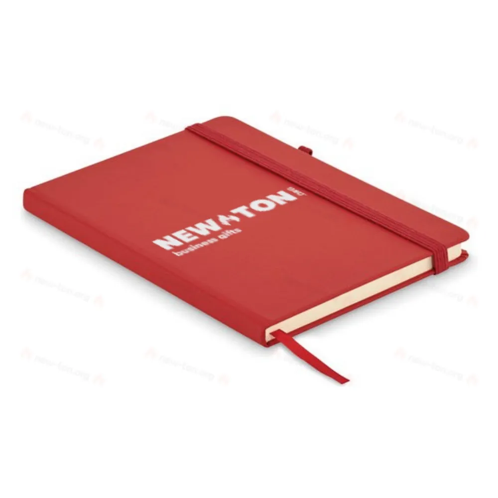 Блокнот формата A5 с обложкой из переработанного полиуретана. Переплет. 192 линованные страницы из переработанной бумаги (96 листов). Эластичный ремешок и крепление для маркеров и ручек.