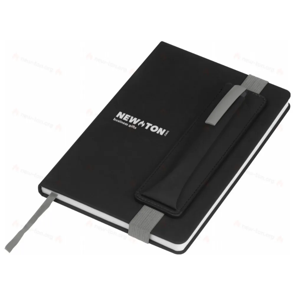 Блокнот формата A5 с обложкой из искусственной кожи, 192 линованных страницы, закладка и эластичная лента для закрытия, включая держатель для ручки. Ваш логотип будет напечатан на блокноте.