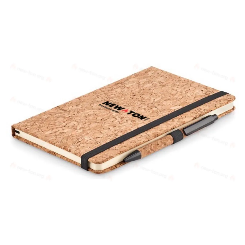 Блокнот A5 в пробковой обложке с ручкой. Блок линованный. Ручка в корпусе из пробки и клипом из составного материала 50% пшеничной соломы и 50% ПП. Набор идет в подарочной коробке.