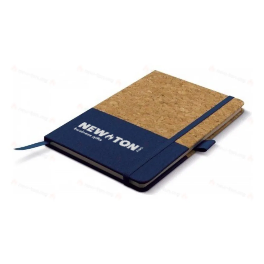 Блокнот в двухцветной твердой обложке из пробки и мягкой веганской кожи. Этот современный блокнот поставляется с эластичным ремешком и петлей для ручки. 160 страниц в линию сделаны из переработанной бумаги.