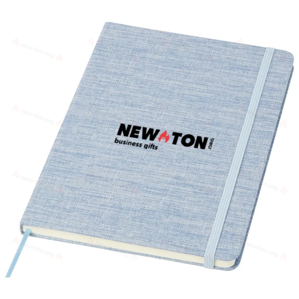 Тетрадь в твердой обложке формата A5, изготовленная из переработанного хлопка, содержит 80 линованных листов бумаги плотностью 70 г/м². Тетрадь оснащена эластичной застежкой, лентой-закладкой и закругленными углами.