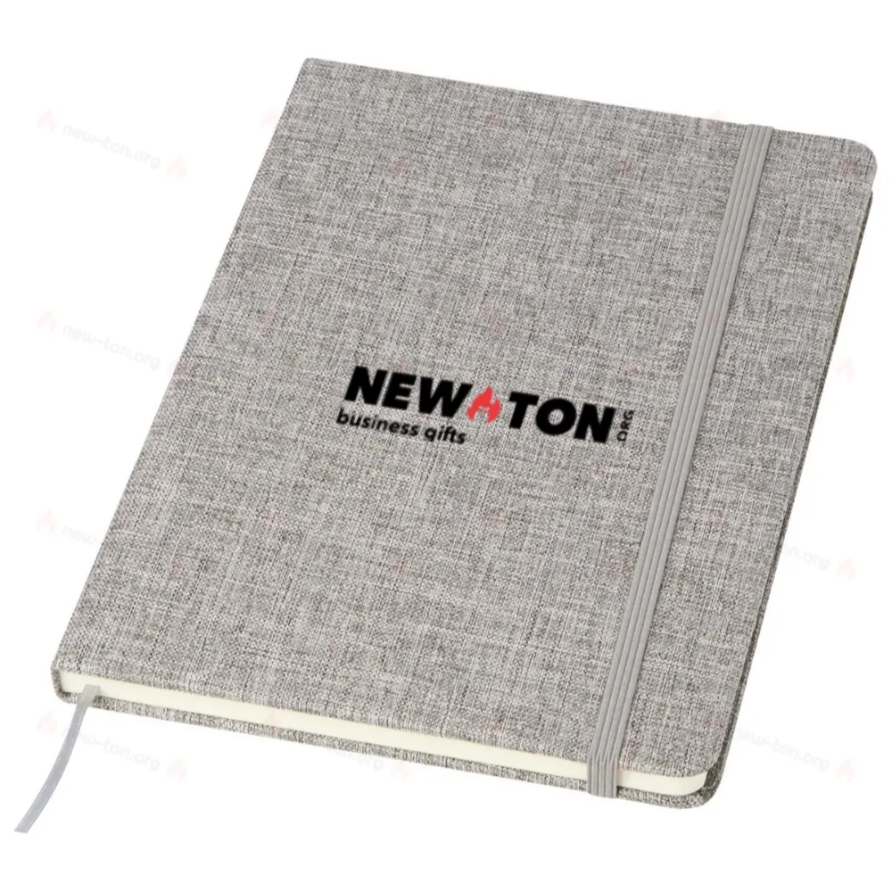 Тетрадь в твердой обложке формата A5, изготовленная из переработанного хлопка, содержит 80 линованных листов бумаги плотностью 70 г/м². Тетрадь оснащена эластичной застежкой, лентой-закладкой и закругленными углами.