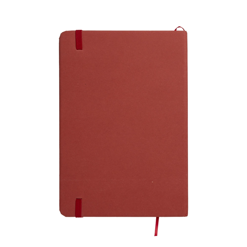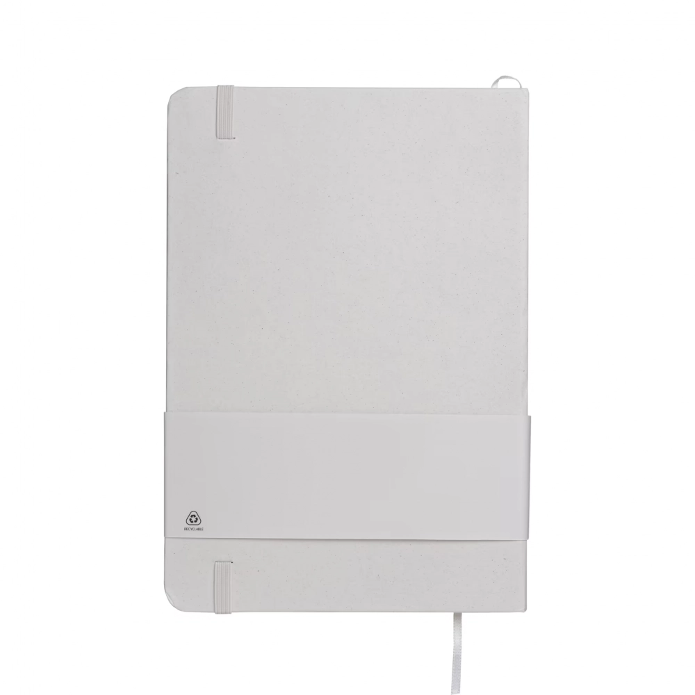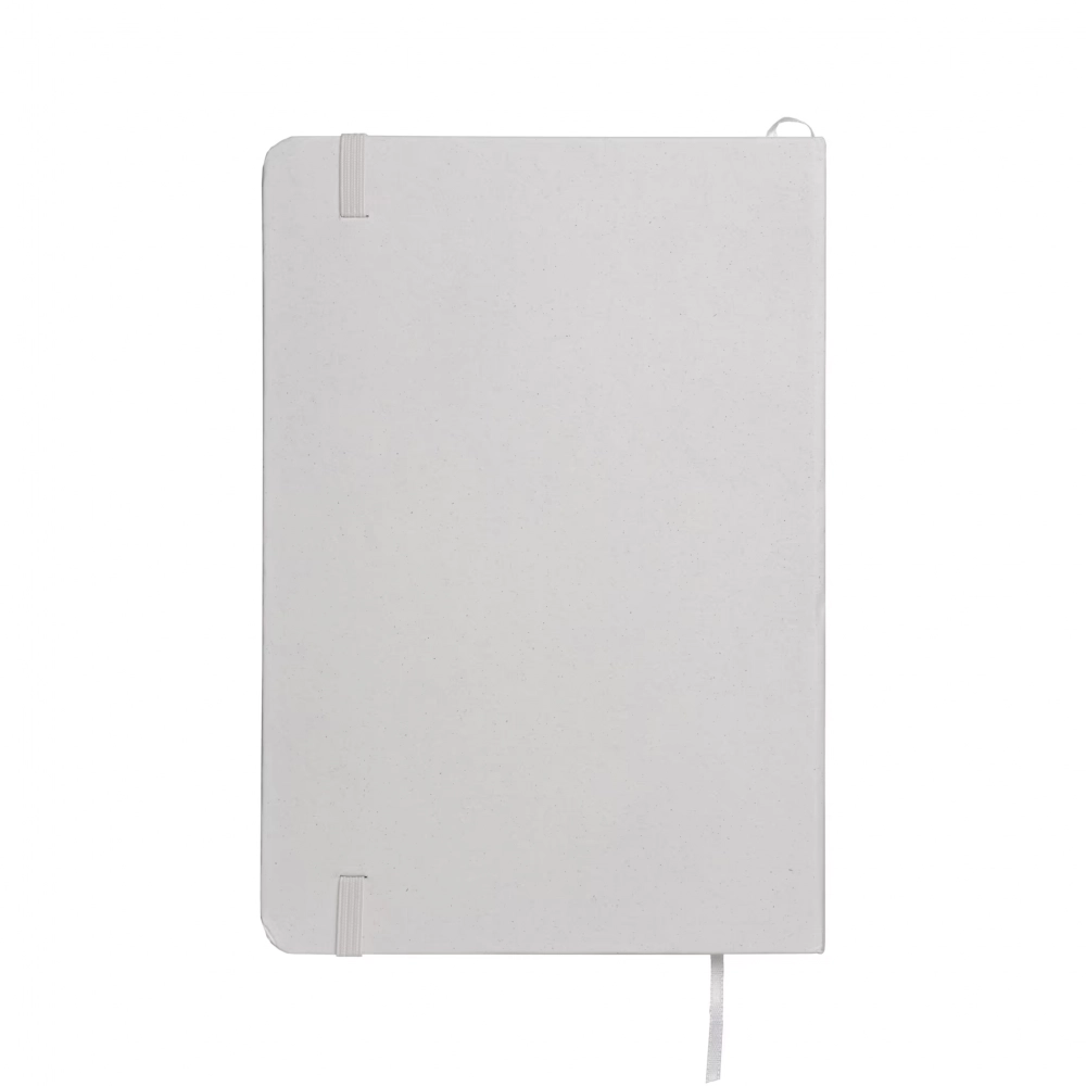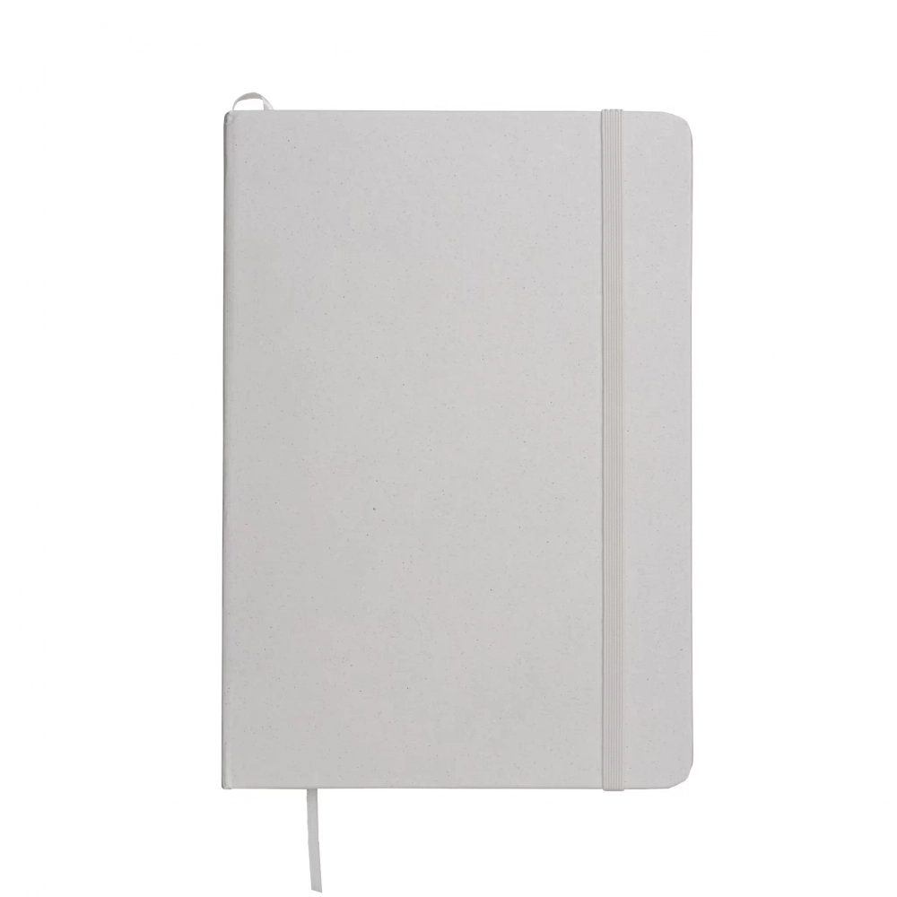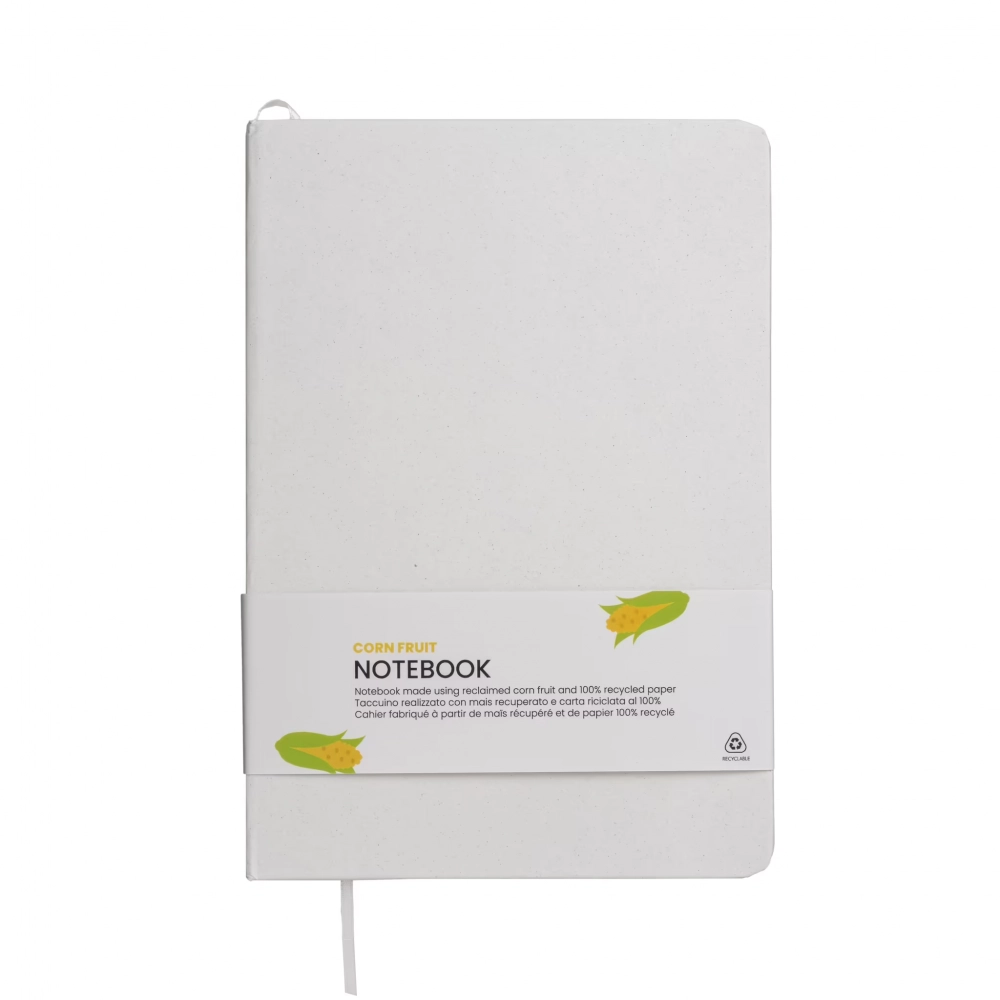 Блокнот с обложкой из остатков кофейных зерен, вишни, лаванды, лимона, кукурузы и киви. Листы в полоску из переработанной бумаги цвета слоновой кости (80 страниц), застежка на резинке и атласная закладка в тон.