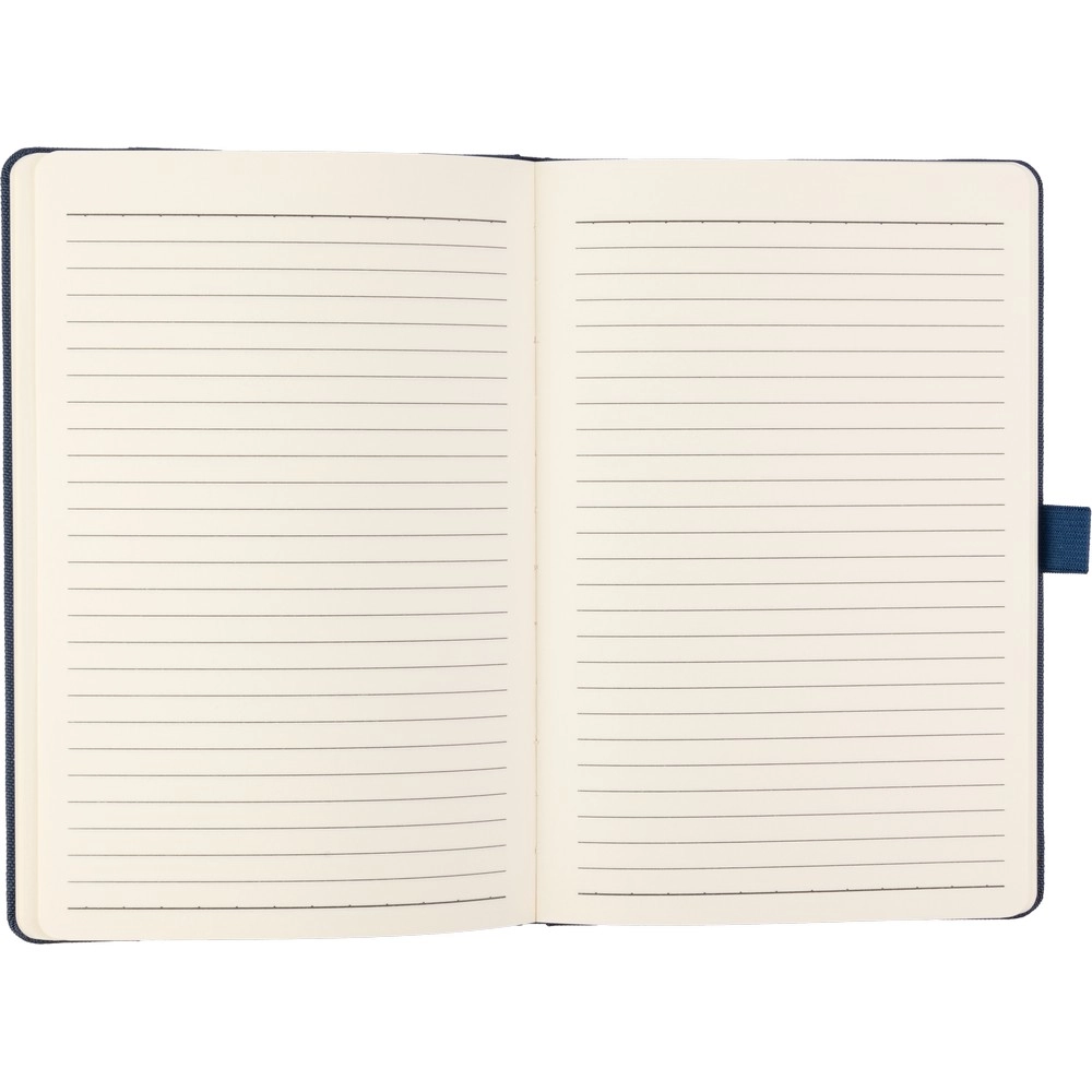 Блокнот формата А5 с 100 линованными страницами, помещается в школьный рюкзак, упакован в индивидуальную упаковку из ткани, изготовлен из RPET.