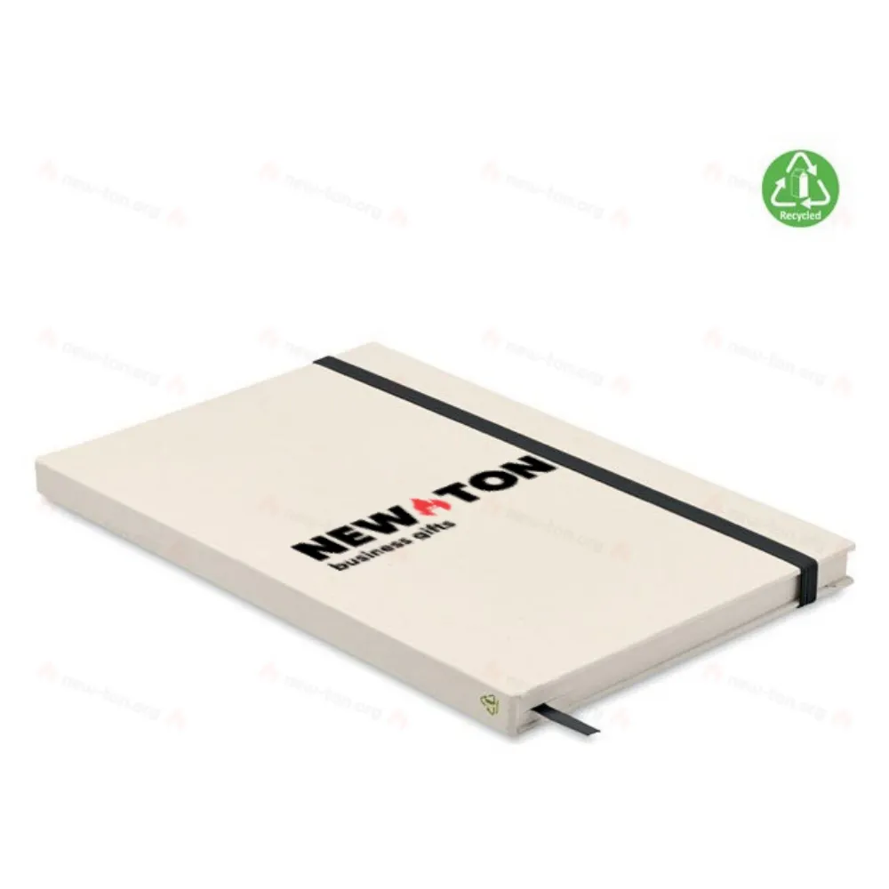Блокнот A5 на резинке в твердой обложке, изготовленный на 70% из переработанного картона и на 30% из переработанной бумаги. В переплете. 160 линованных страниц (80 листов 80 gsm) из переработанной бумаги. Ленточка-закладка.
