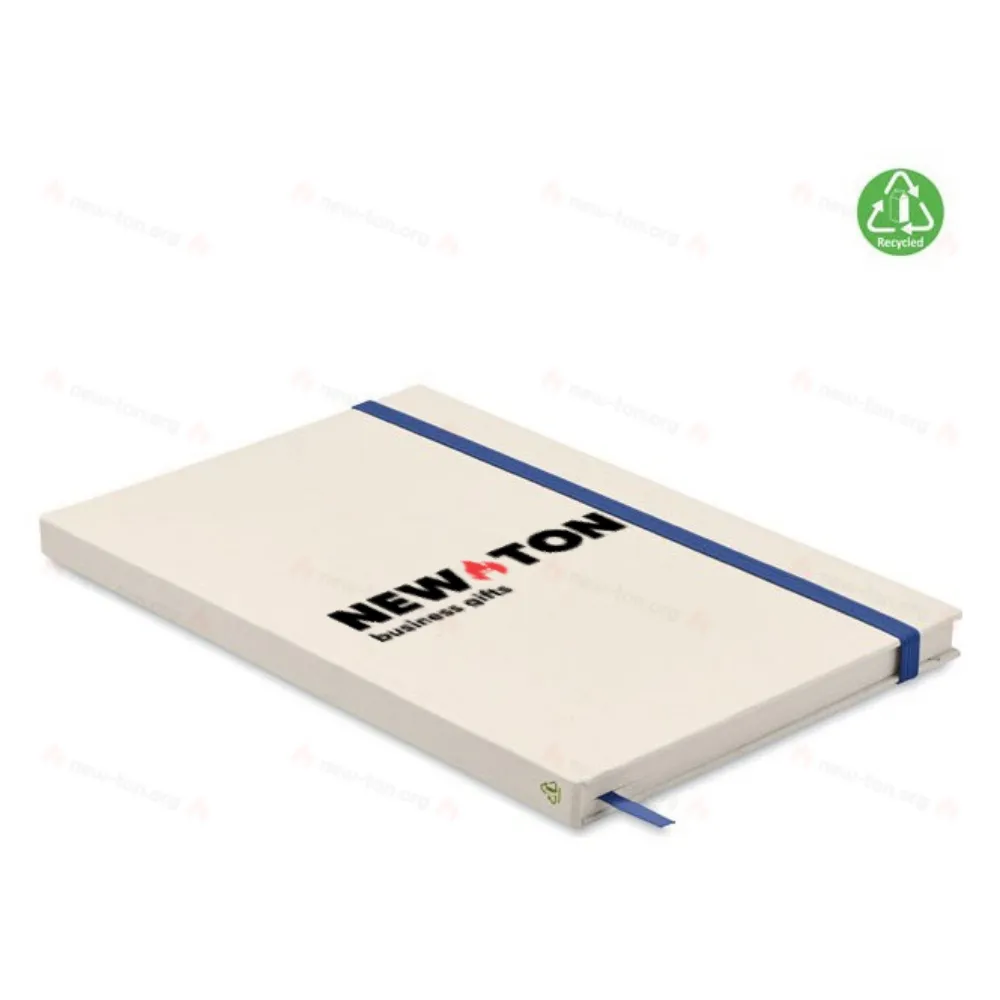 Блокнот A5 на резинке в твердой обложке, изготовленный на 70% из переработанного картона и на 30% из переработанной бумаги. В переплете. 160 линованных страниц (80 листов 80 gsm) из переработанной бумаги. Ленточка-закладка.