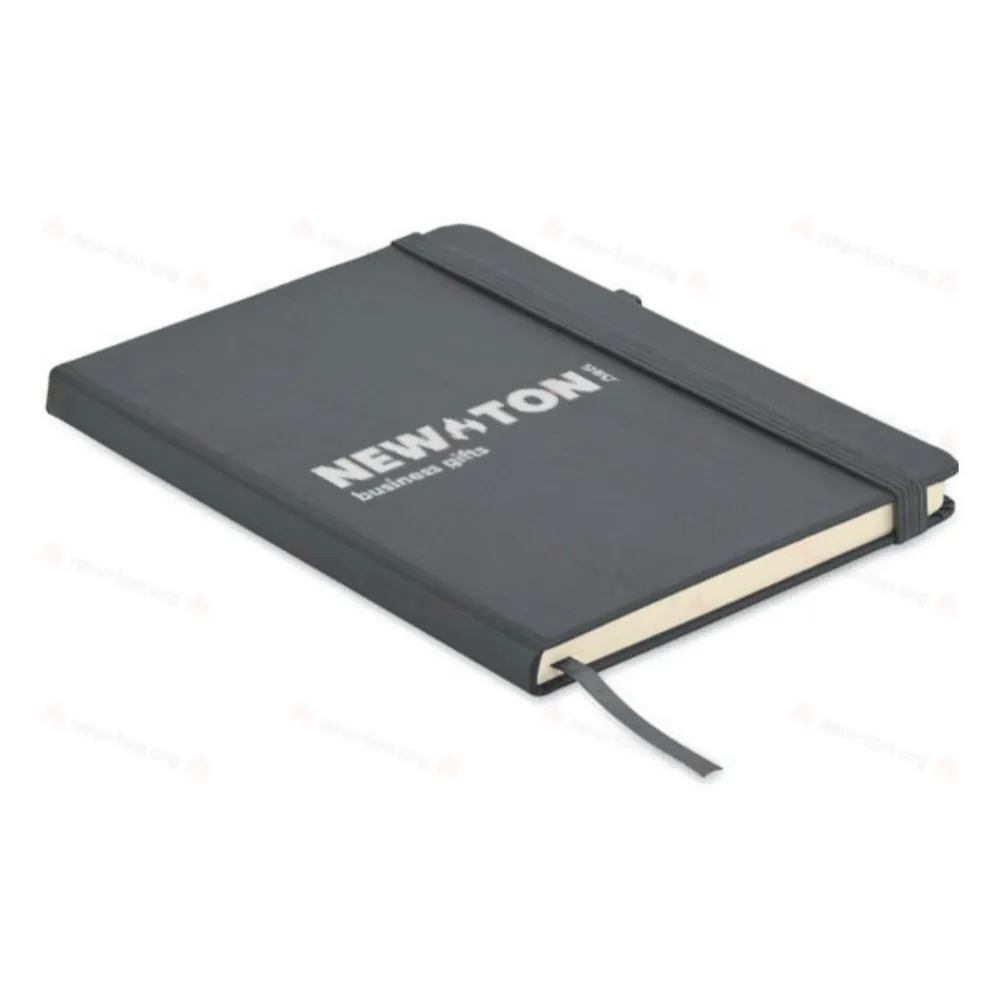 Блокнот формата A5 с обложкой из переработанного полиуретана. Переплет. 192 линованные страницы из переработанной бумаги (96 листов). Эластичный ремешок и крепление для маркеров и ручек.