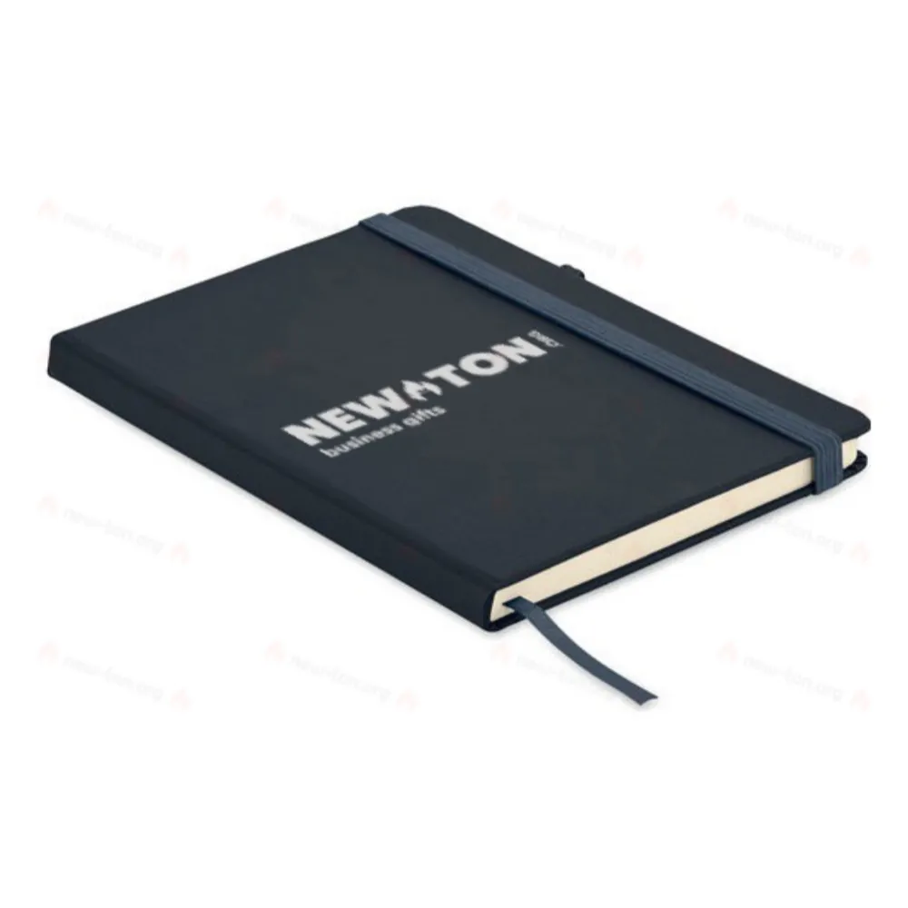 Блокнот формата A5 с обложкой из переработанного полиуретана. Переплет. 192 линованные страницы из переработанной бумаги (96 листов). Эластичный ремешок и крепление для маркеров и ручек.